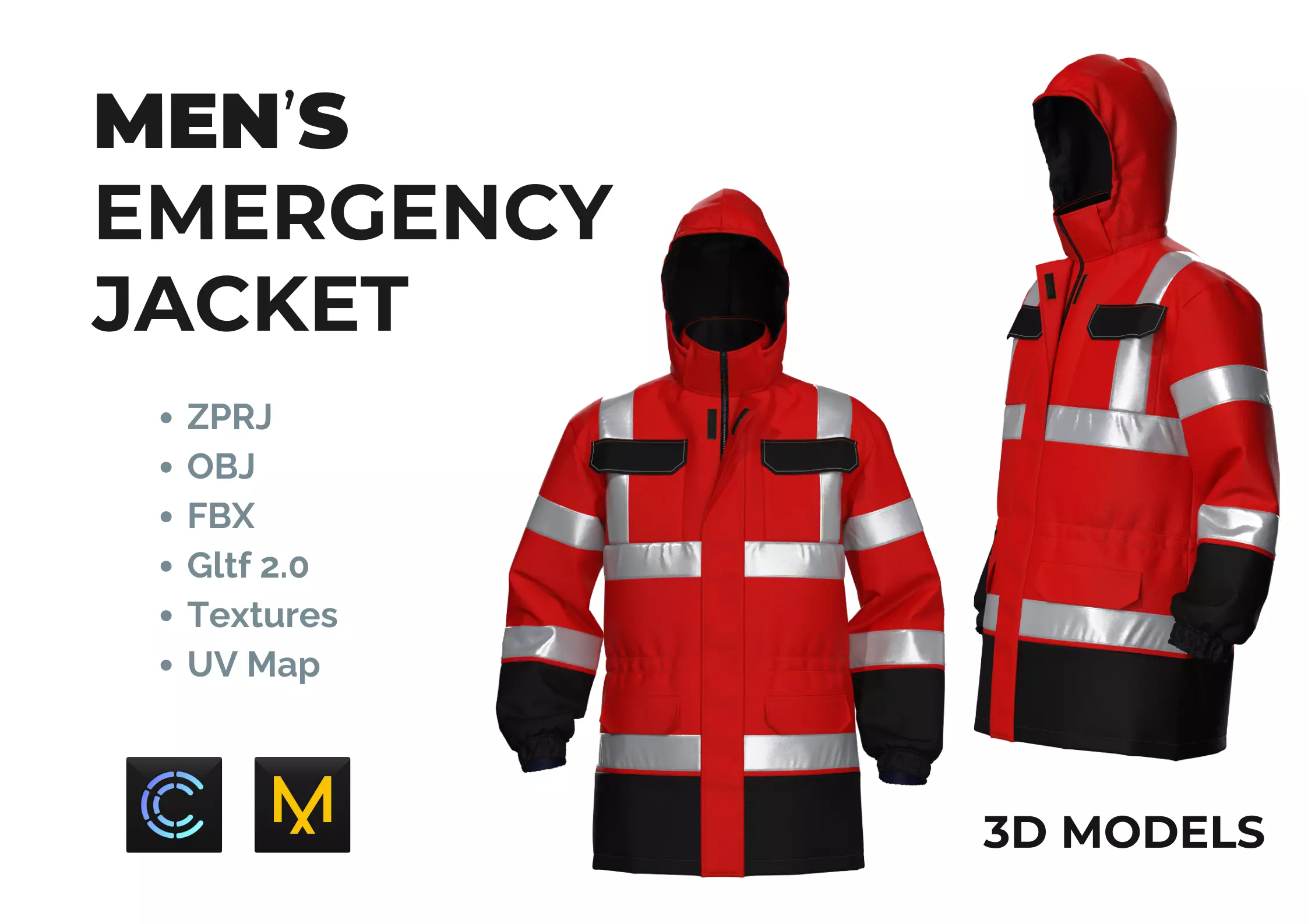Mens Emergency Rescue Uniform (Hooded jacket) with pockets and reflective tapes. Created in CLO3D ver.7.2. High detailing of products.