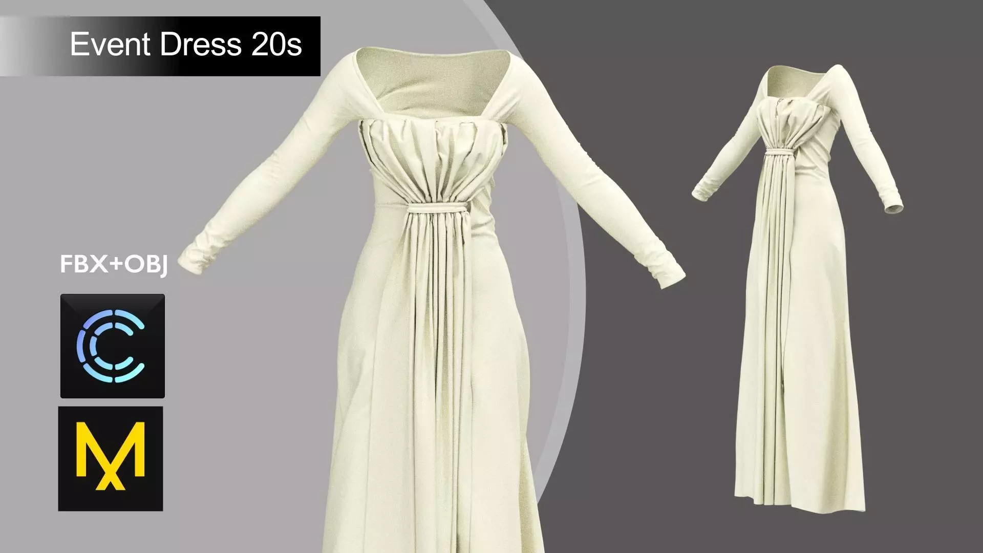 Event Female Dress 20s Marvelous Designer/Clo3d project + OBJ + FBX
