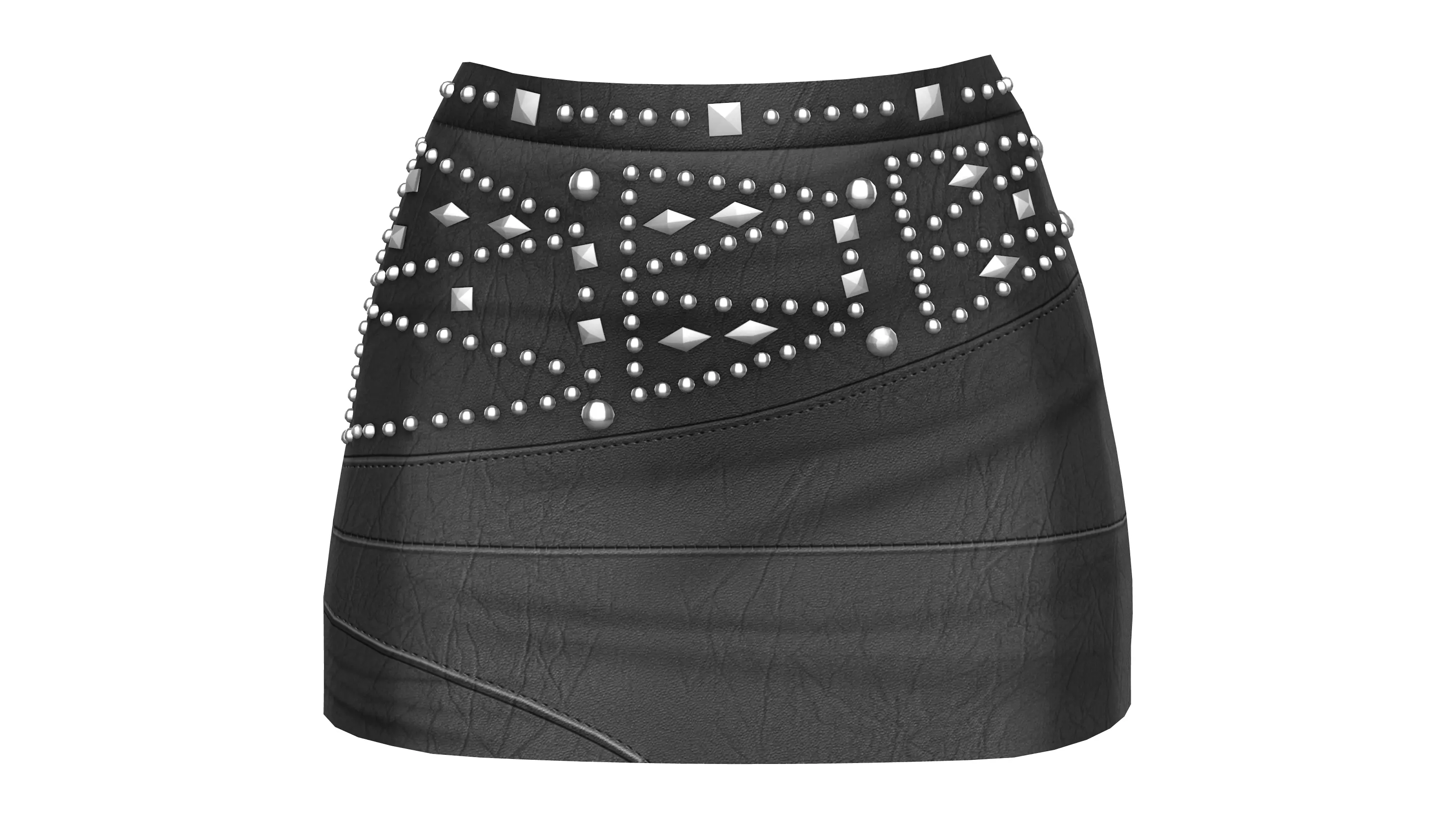 Female Black Leather Mini Skirt With Studs Low-poly 3D model