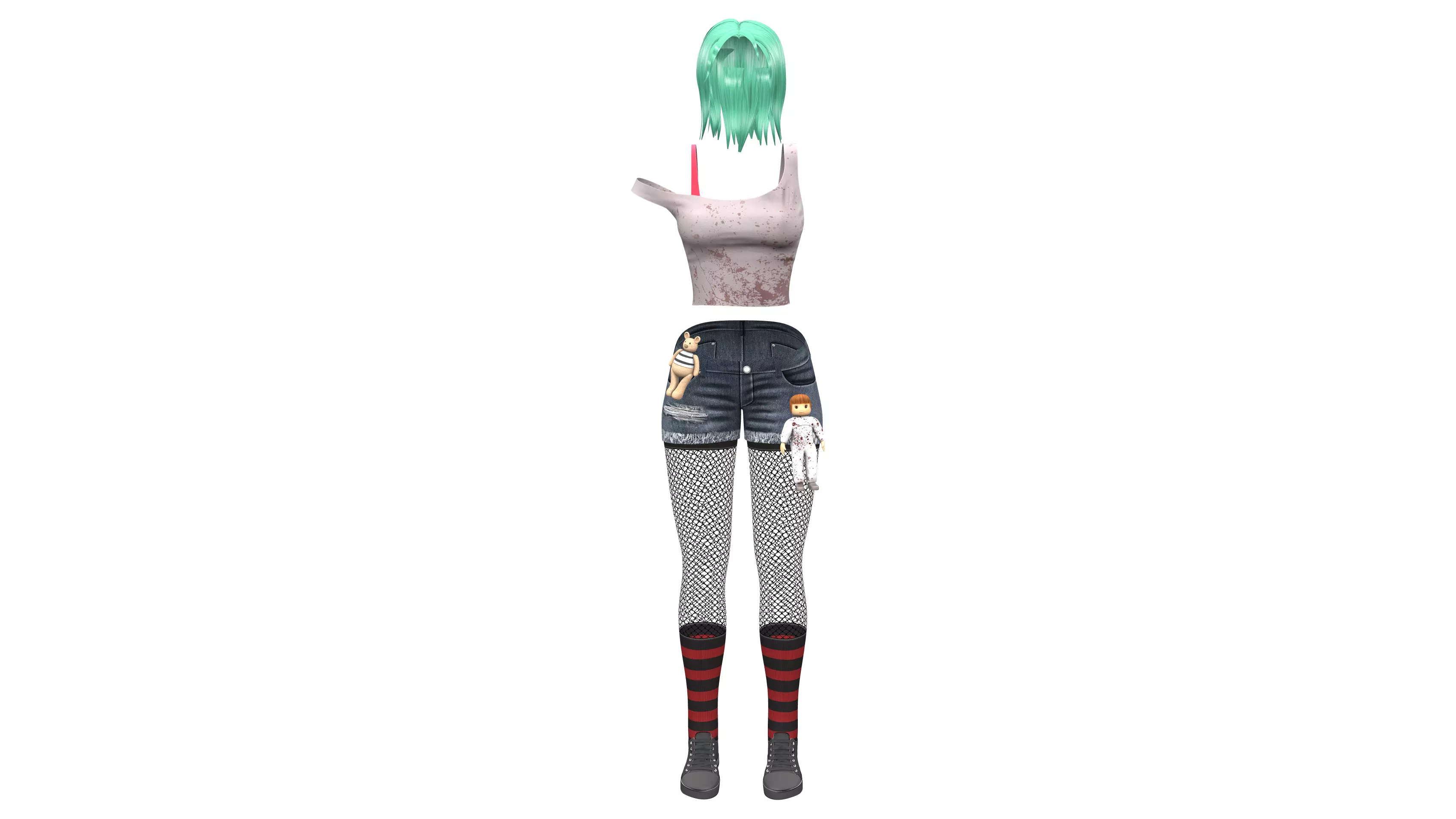 Female Denim Shorts Stockings Flat Shoes Top Stained Outfit Low-poly 3D model