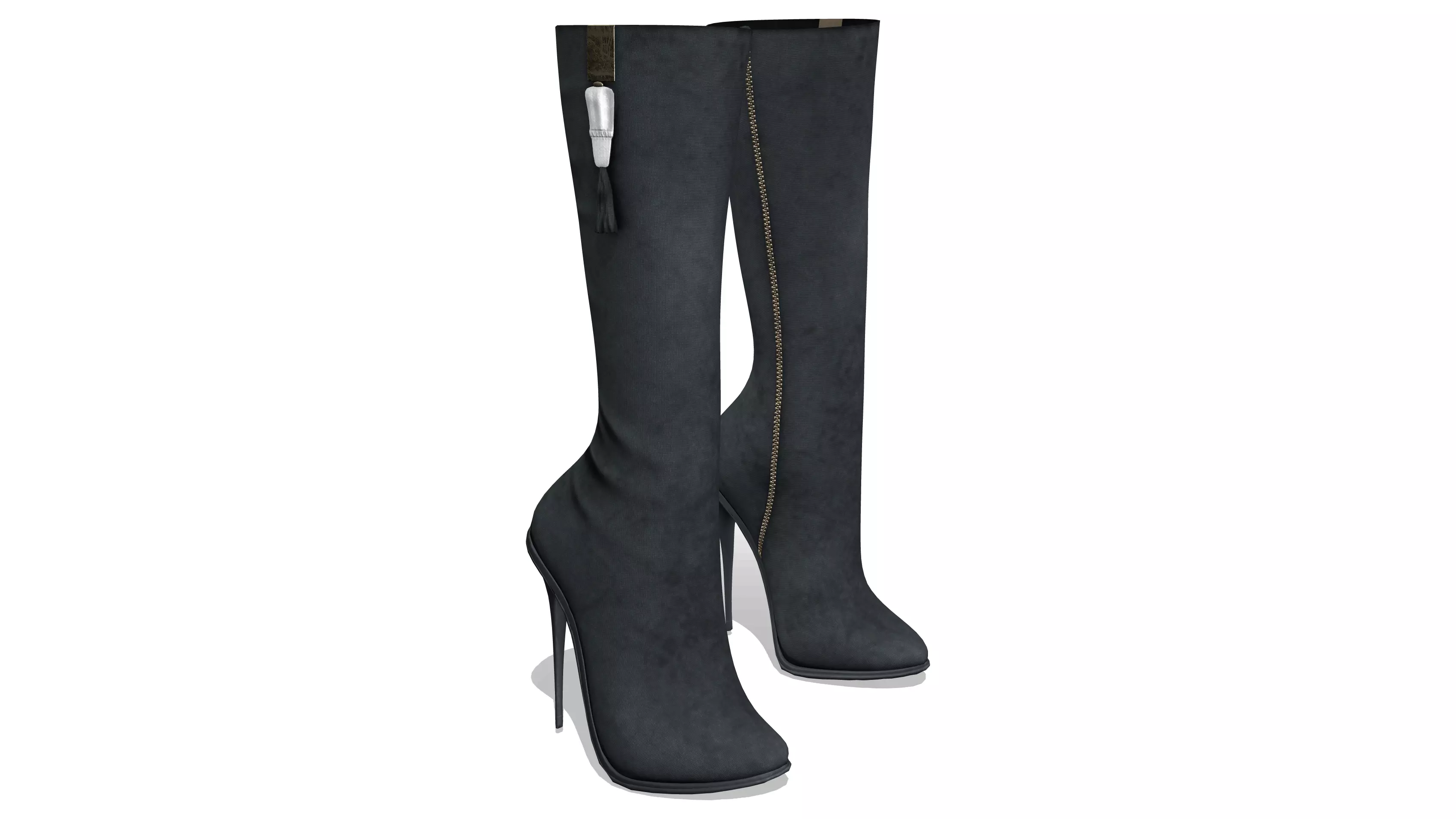 Female High Heel Combat Black Calf Boots Low-poly 3D model