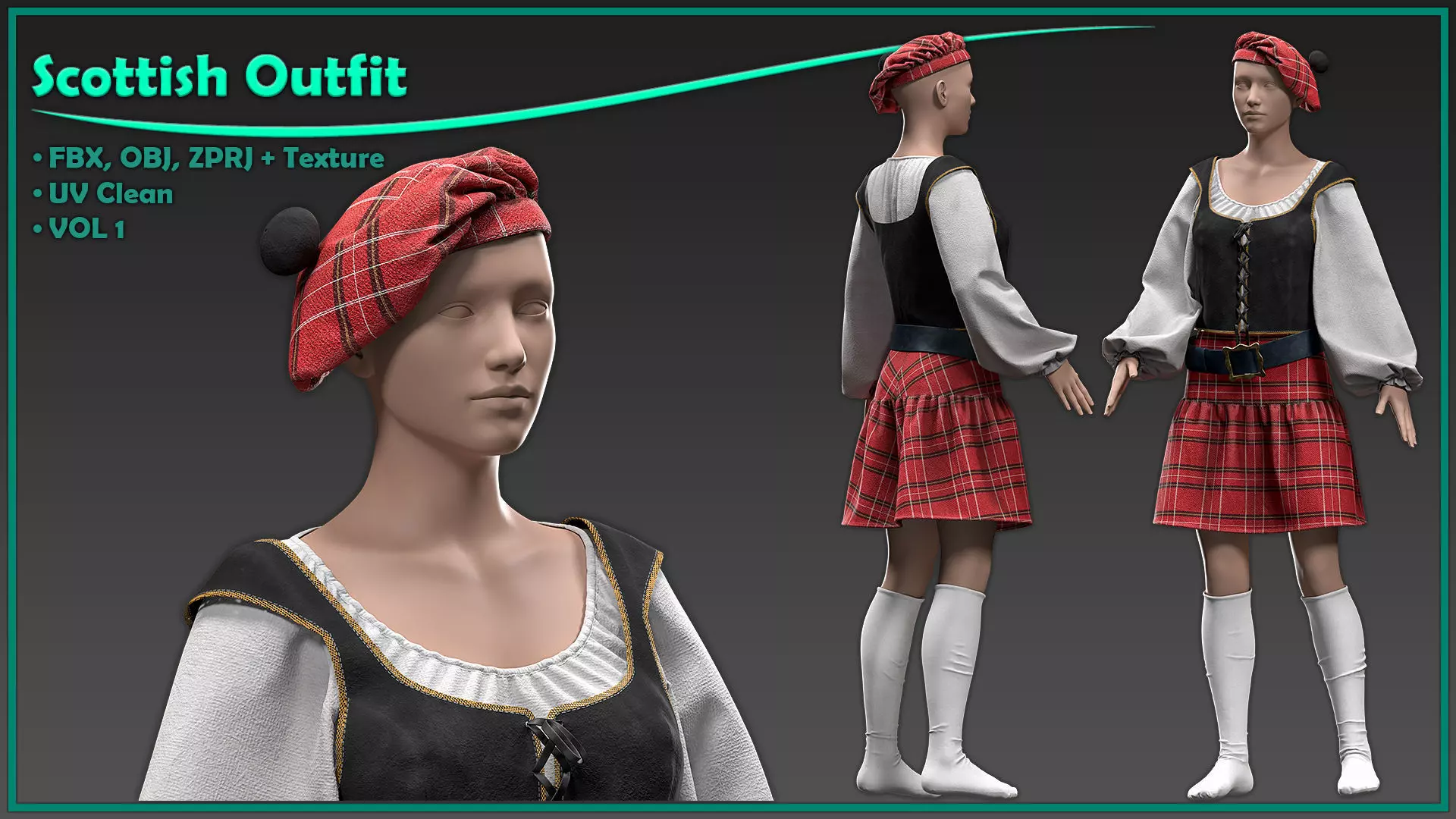 female Scottish outfit with texture 3D model