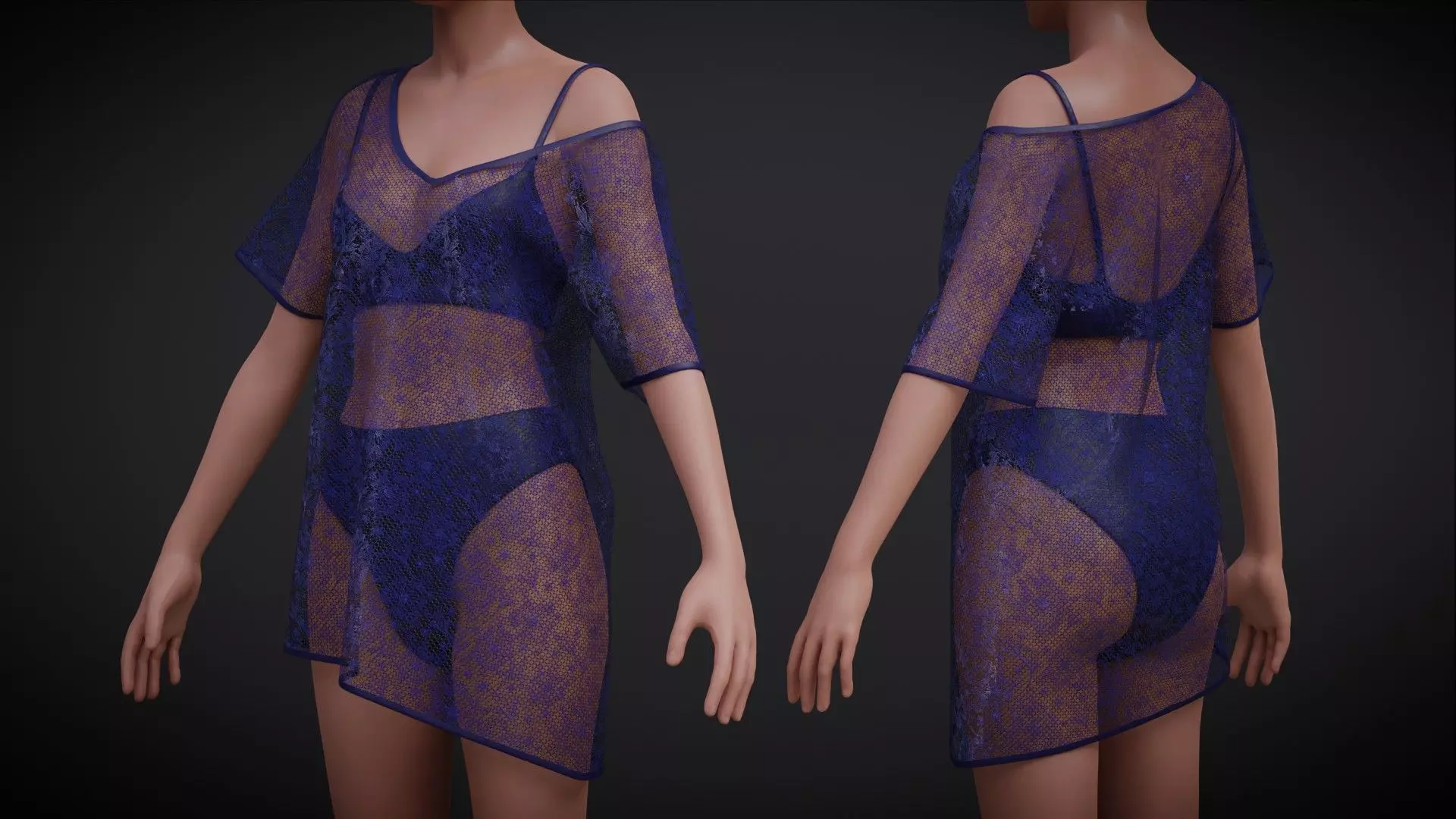 this is a high quality 3D set and lace shirt dress that can be used for your rendering projects. The model is a detailed design that allows for close-up renders. Blend file contains already set up background scene, lighting and camera which you easily import more props and render according to choice