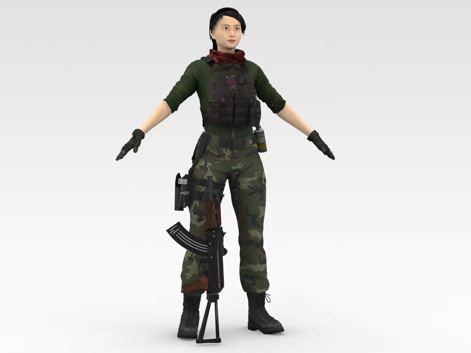 Description:Female Soldier 3D model is a high quality, photo real model that will enhance detail and realism to any of your game projects or commercials. The model has a fully textured, detailed design that allows for close-up renders. Features:• High quality polygonal model with detailed texture, correctly scaled for an accurate representation of the original object.• Maya 2019 V-Ray and standard materials scenes along with multiple other file formats.• Texture files are given in .jpg formats for easy access.• All preview images are rendered using Autodesk Maya vray• No cleaning up necessary, just drop your models into the scene, Load the texture and start rendering.• No special plugin needed to open scene.