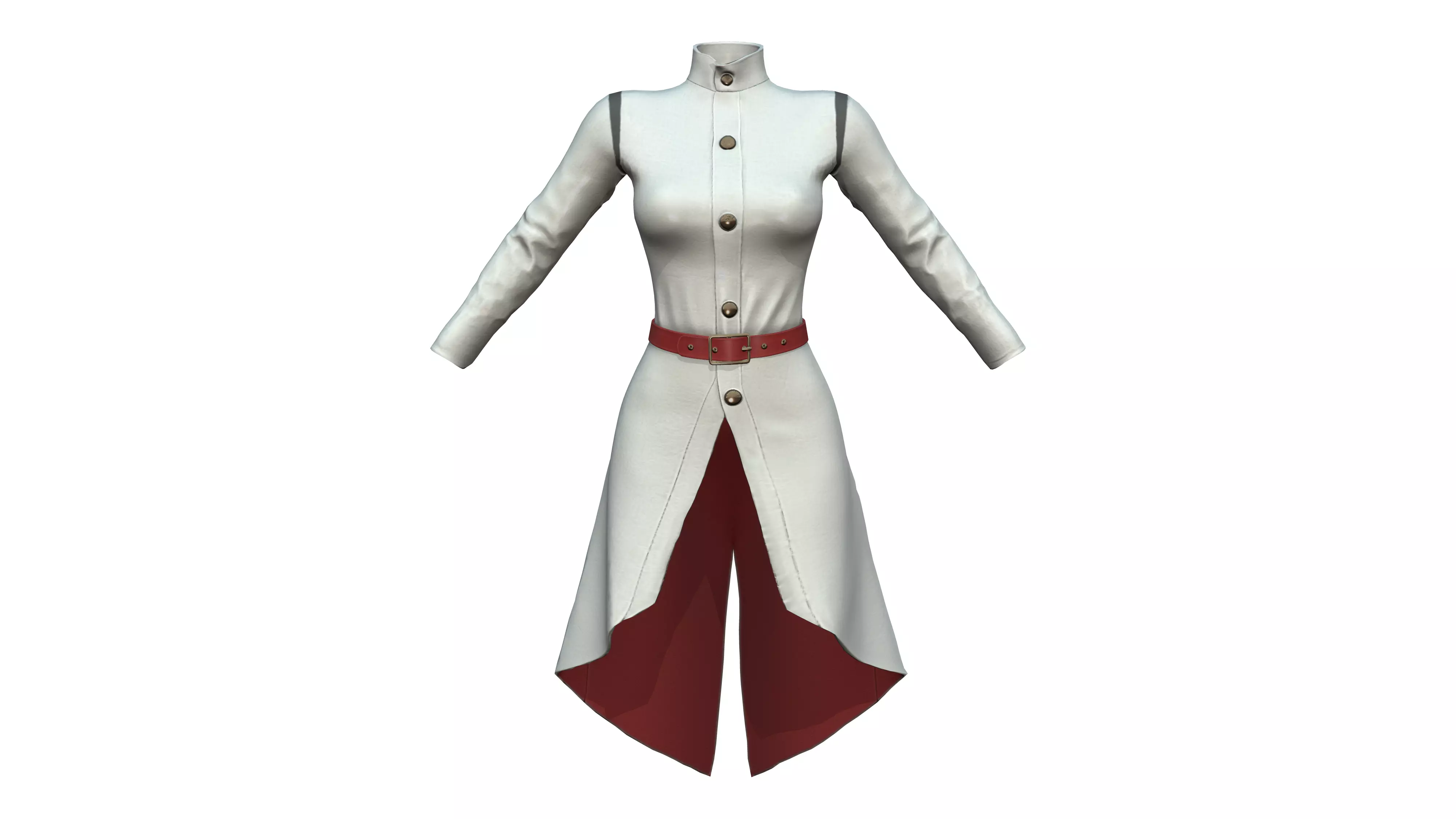 Female White Sci-Fi Jacket Long Coat Low-poly 3D model