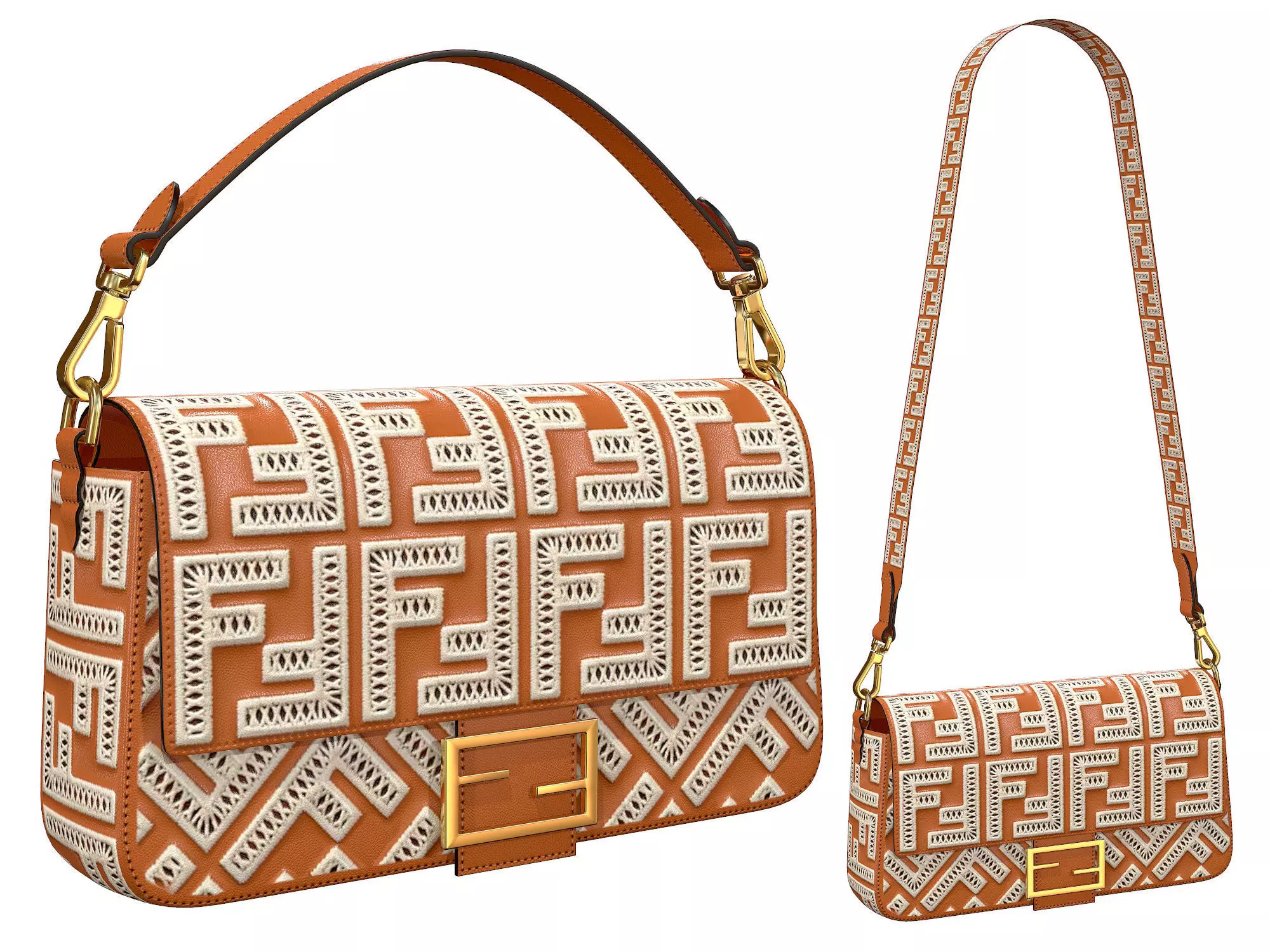 Fendi Baguette Bag Brown Leather Low-poly 3D model
