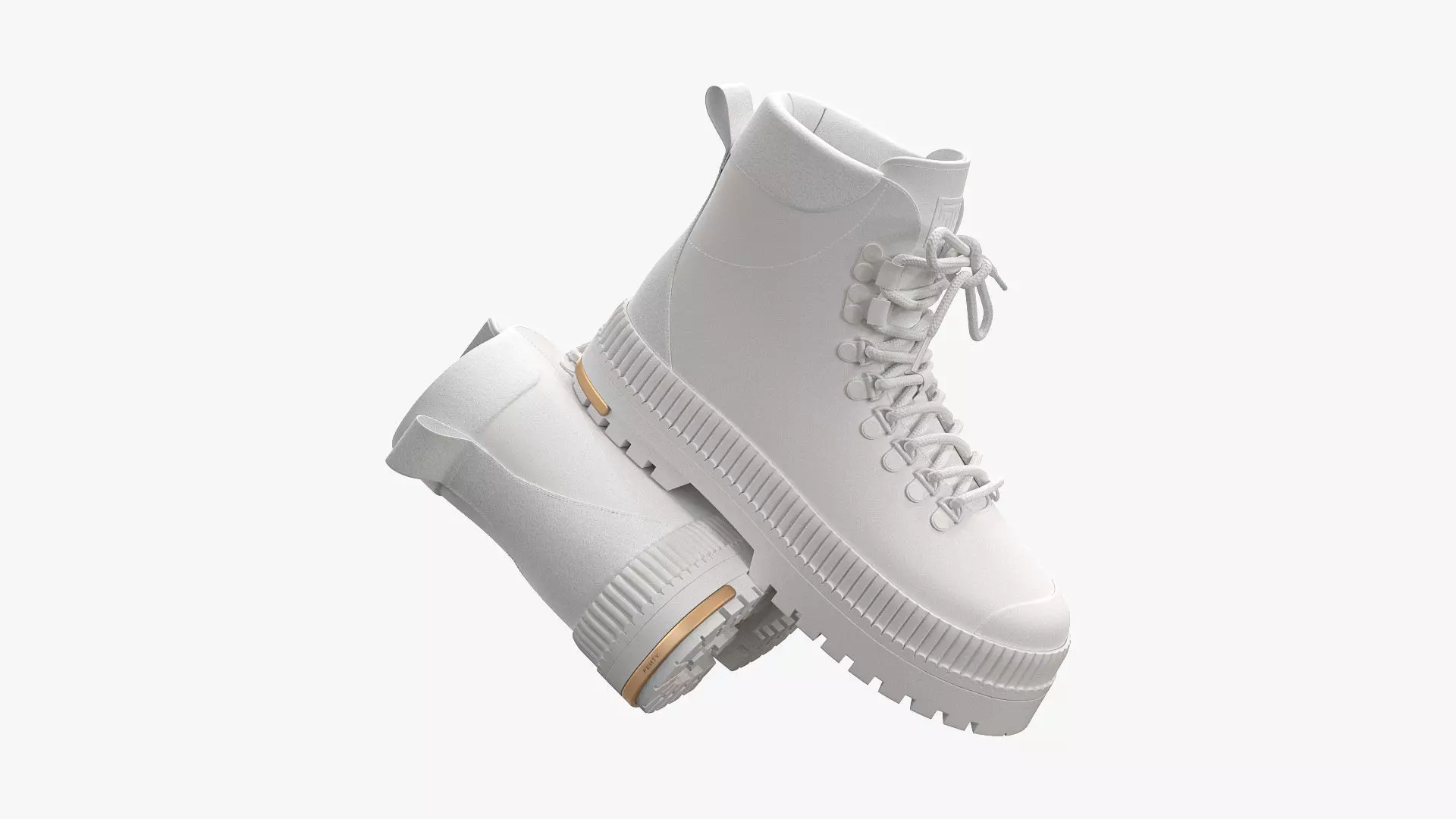 Detailed 3D model of a pair of White Fenty Hitch Hiker Boots, modeled in Cinema 4D and rendered with V-Ray 5. The model was created using approximate real world dimensions.