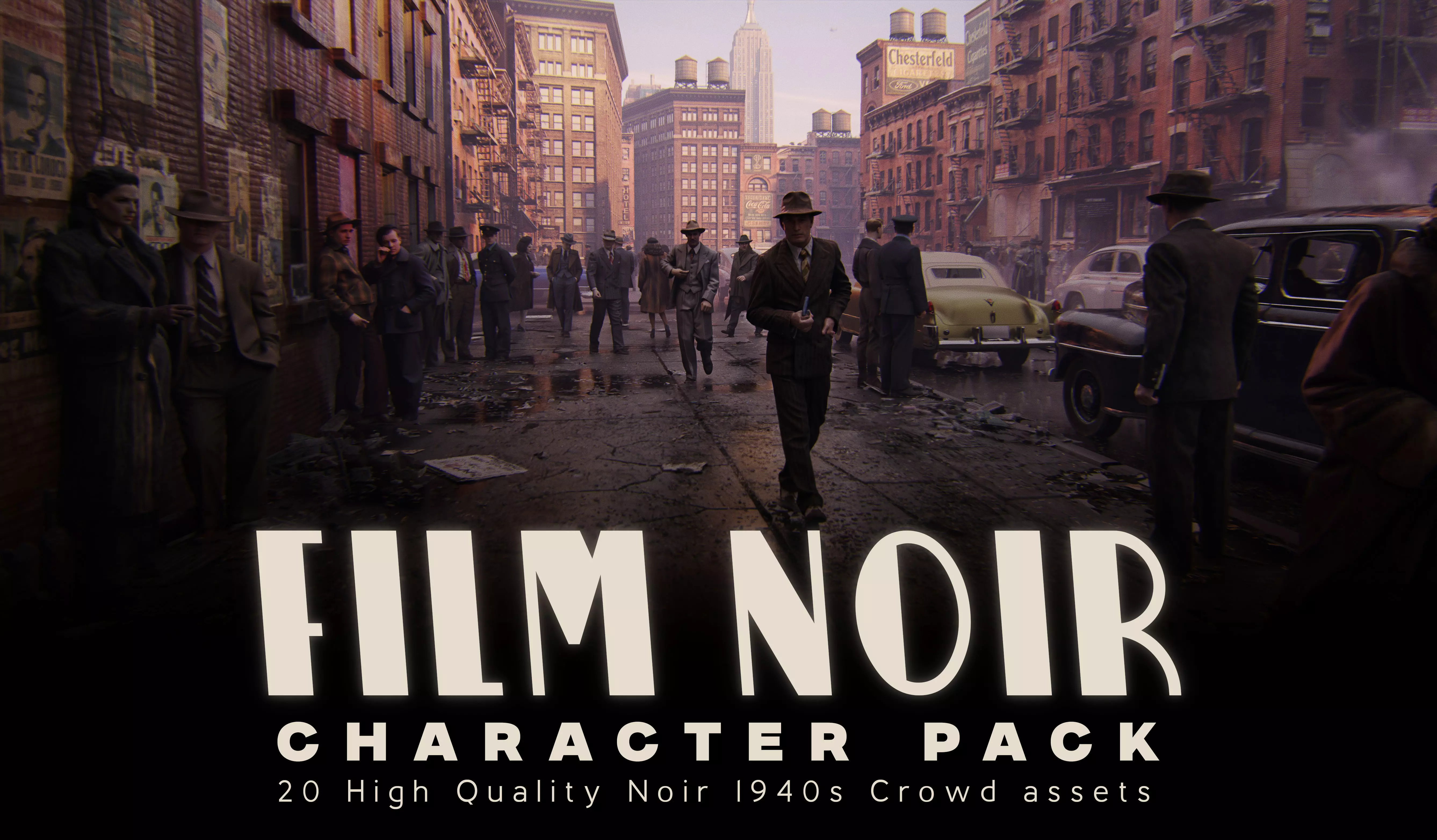 This pack focuses on believable film noir–inspired civilians, making it ideal for populating scenes, compositions, and environments for key art, world-building, and mood pieces set in moody, mid-20th-century urban settings.