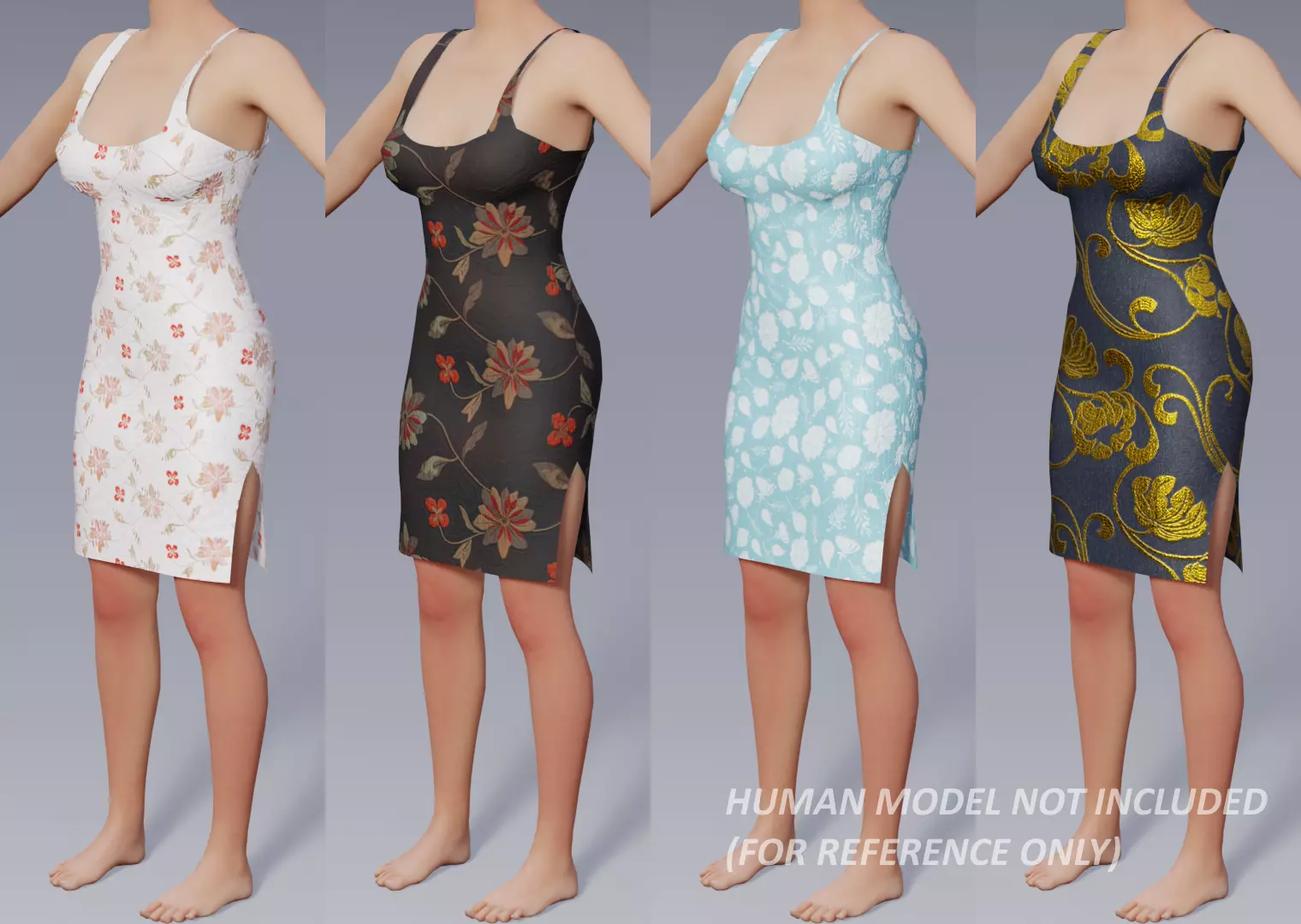 4 flowered dresses 3d models with 5 PBR textures each made in blender 2.93