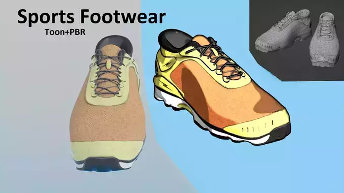 Footwear - Sports StyleUV Unwrapped and textured. Comes with textures at 1k, 2k & 4k resolution. PBR & Toon (LBS) Shader variations.