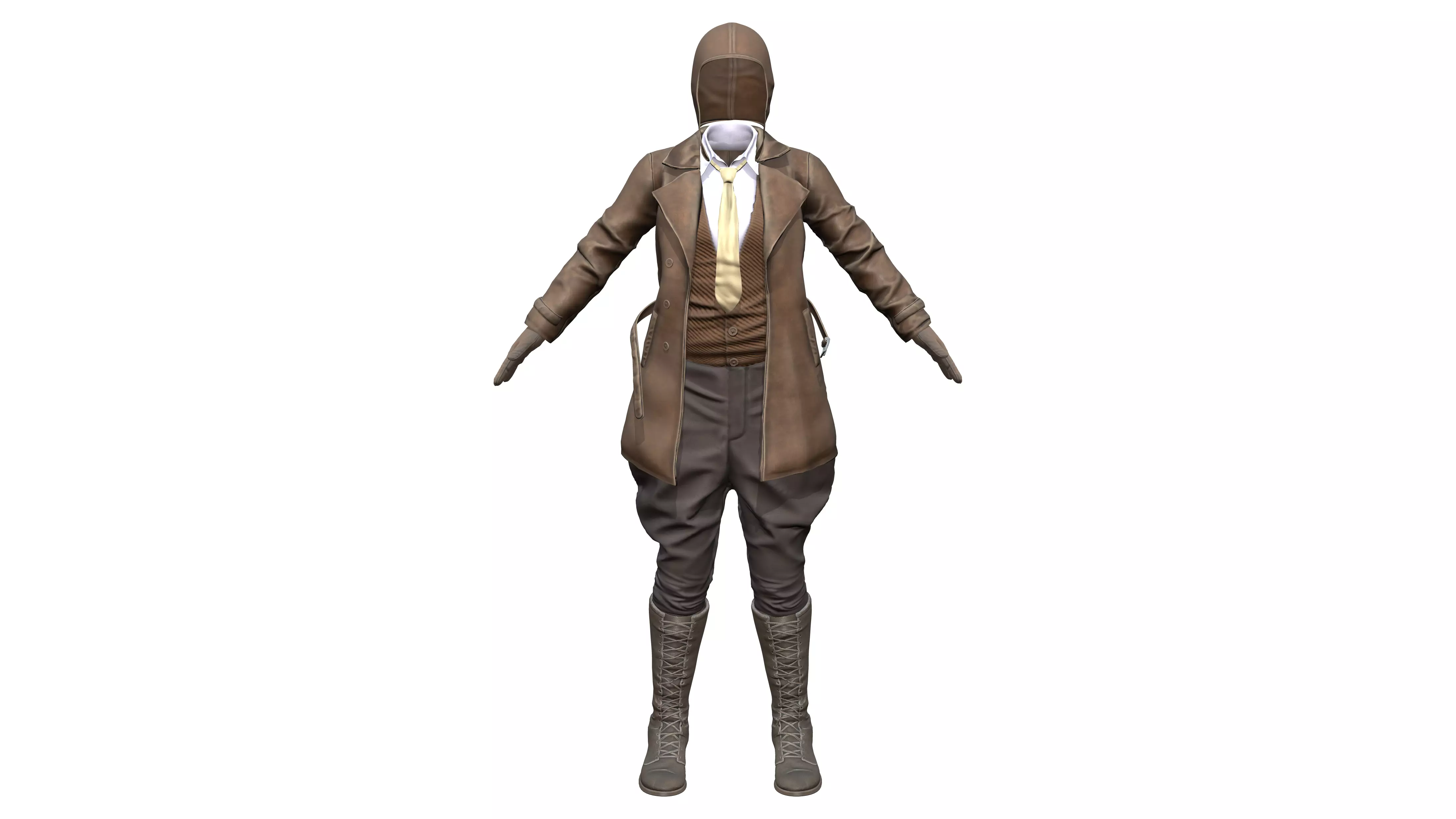 Full Historic Steampunk Aviation Character Outfit Low-poly 3D model
