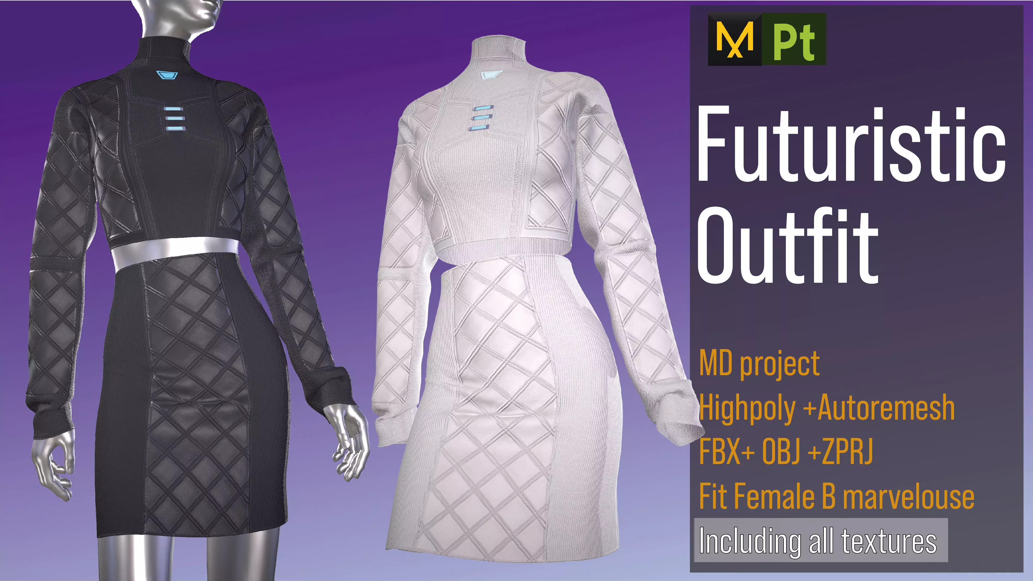 This model is created in Marvelous designer and textured in Adobe Substance painter. The model without textures does not have any details. Textures are 4K PBR.