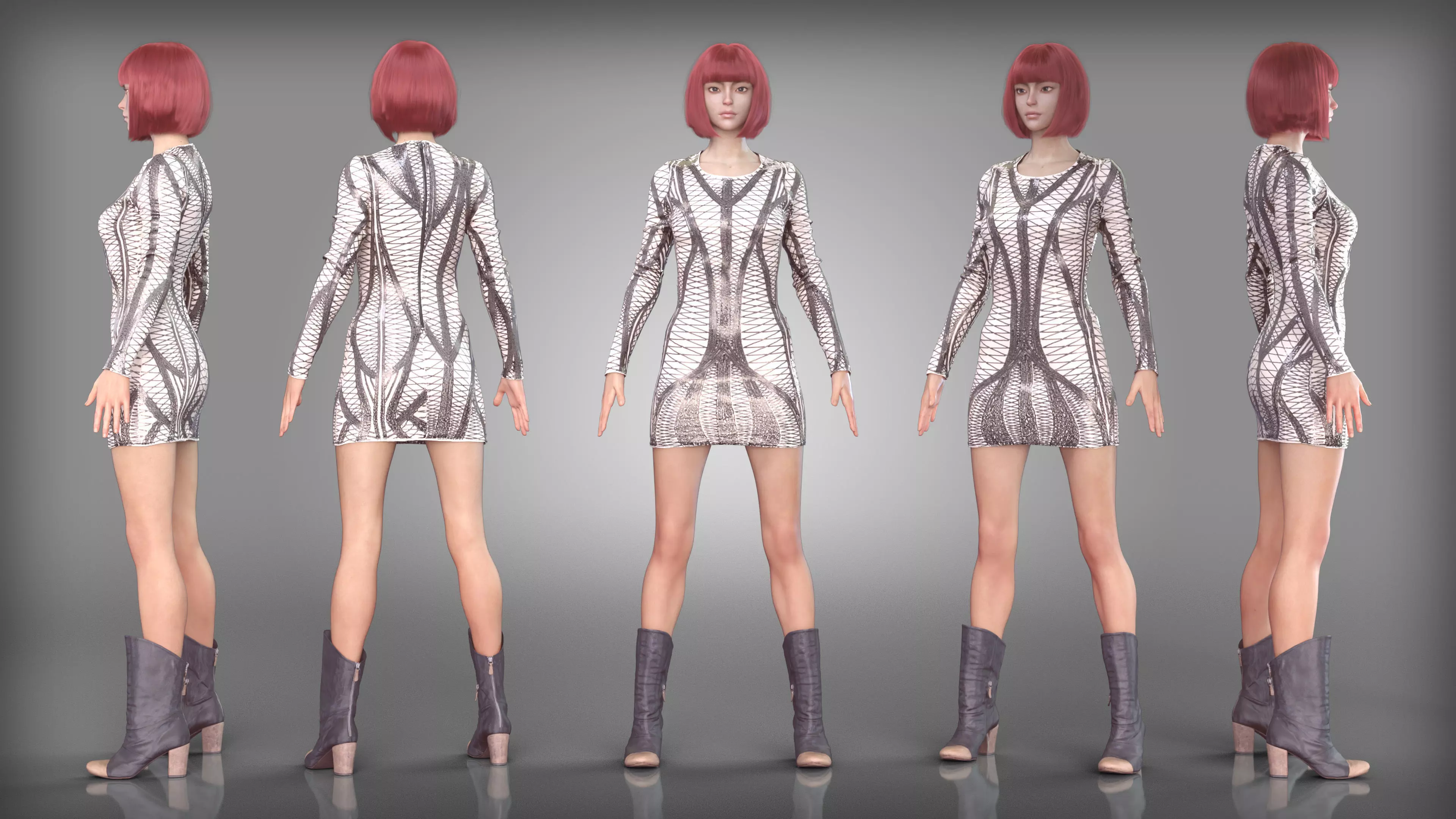 Futuristic Geometric Dress with Knee High Boots Low-poly 3D model