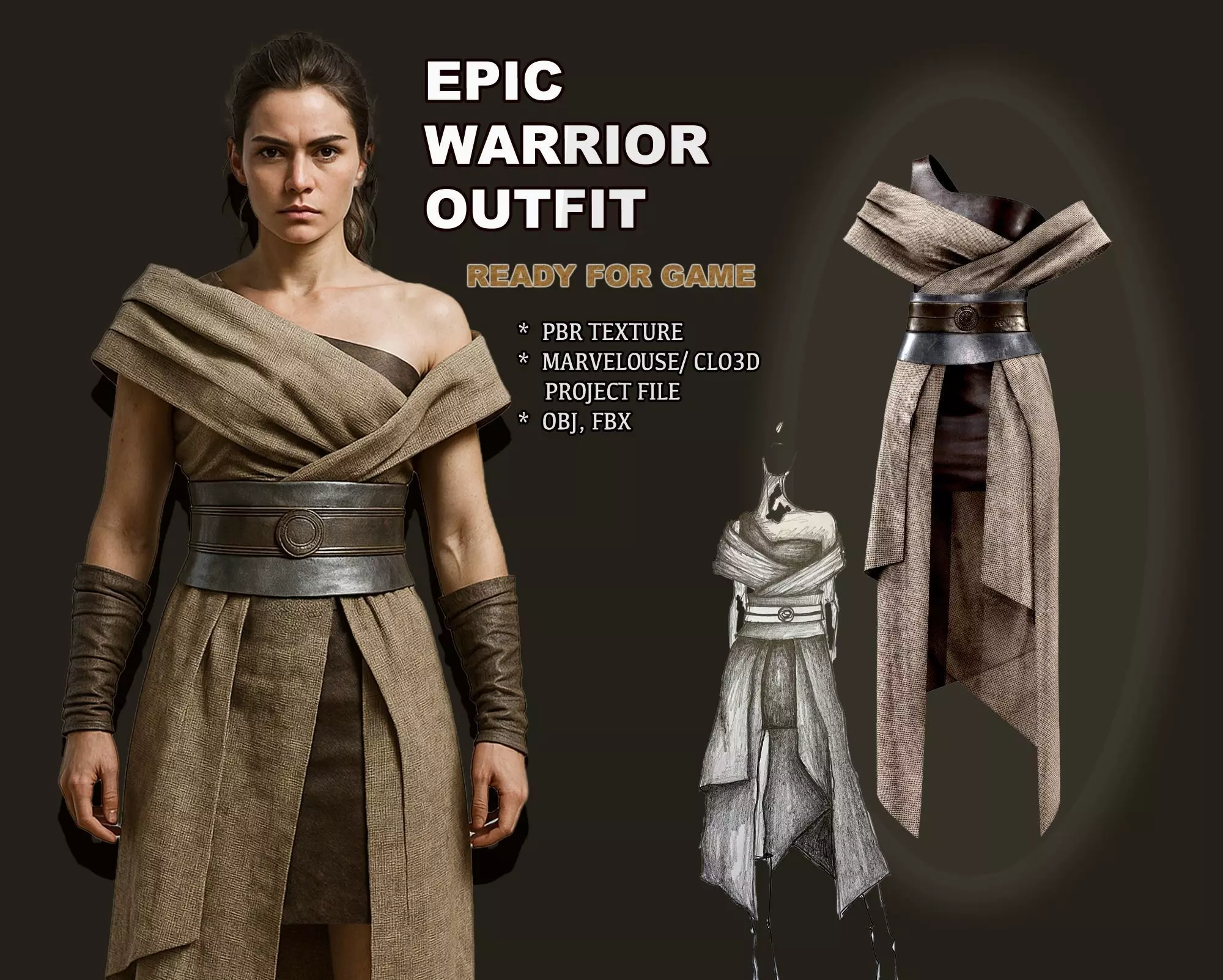 Epic Female Warrior Outfit - Low-Poly Rigged PBR 3D Model Low-poly 3D model
