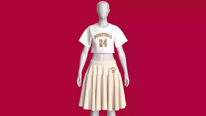 Girls Basketball Crop Top With Skirt Outfit - 24