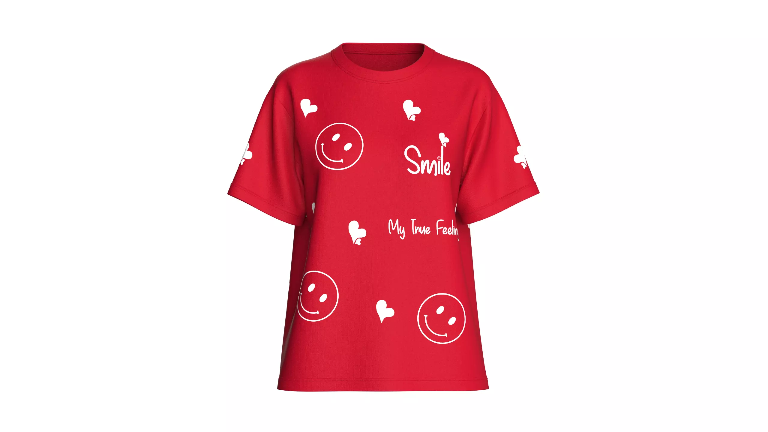 Girls Smile And Love Printed Red T-Shirt