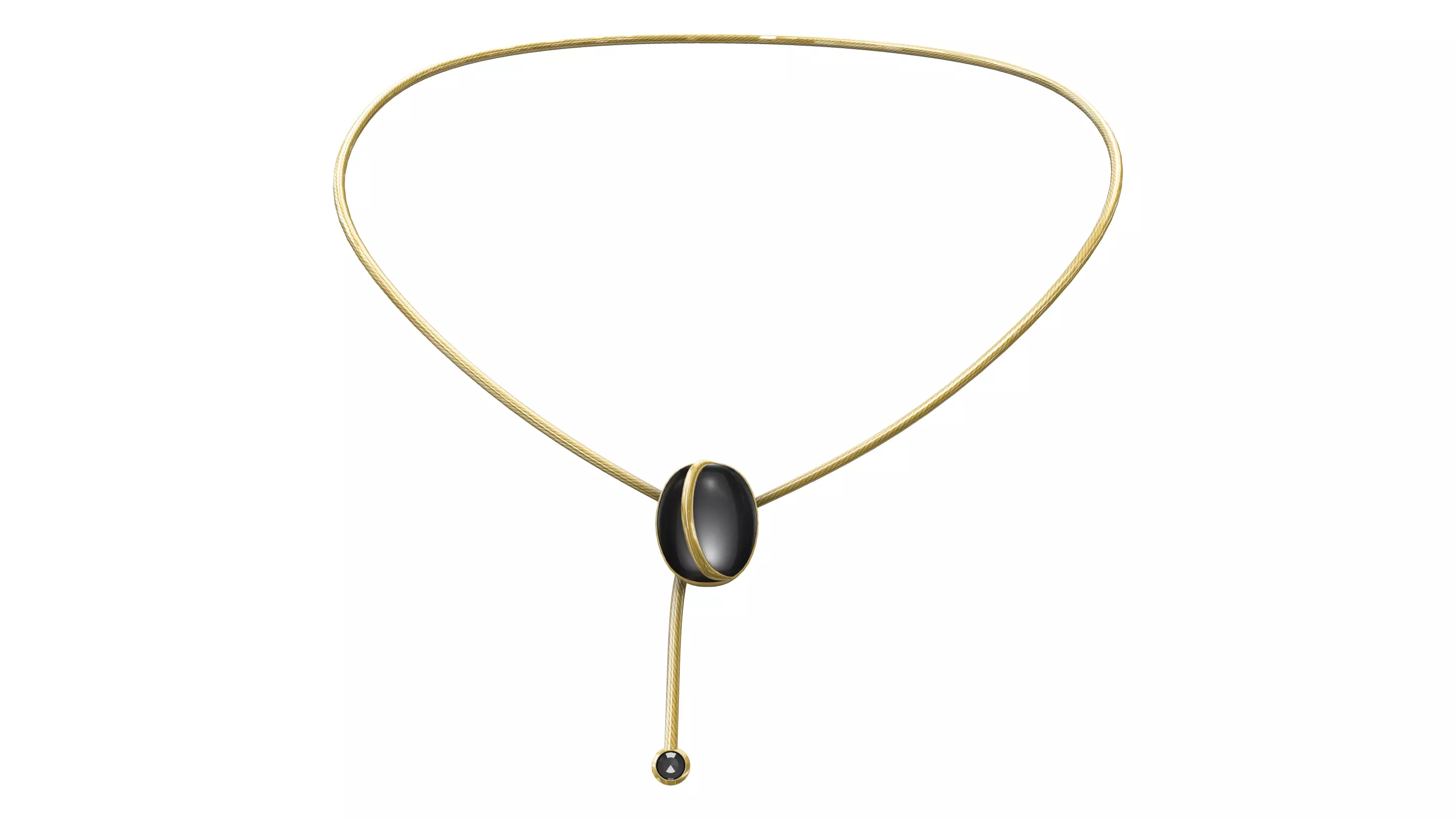 Gold Cord Necklace With Black Obsidian Stone Low-poly 3D model
