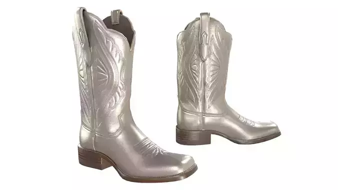 Gold Stitch Cowgirl Boots 3D model