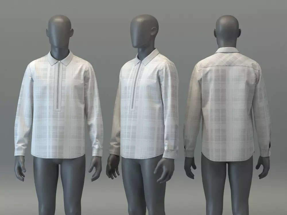 DESIGN DETAILS• Main Fabric: Flannel - Plaid (VMOD Library)• Neckline: Shirt collar with metal zipper opening• Silhouette: Relaxed• Sleeve: Long; shirt cuffs• Length: Hip; Curved hem• Finish: Facing, puckering & stitches included for a more realistic look when rendered