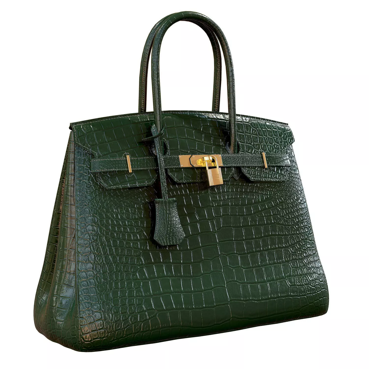 Hermes Birkin Bag Green Crocodile Leather Low-poly 3D model