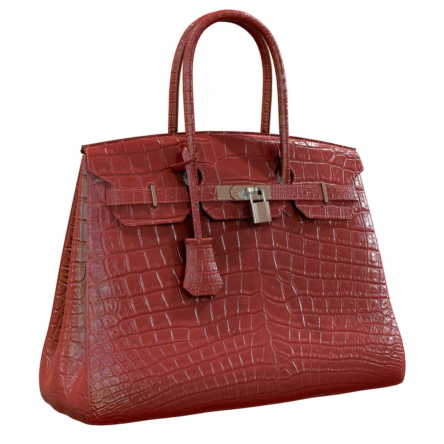 Hermes Birkin Bag Red Crocodile Leather Low-poly 3D model