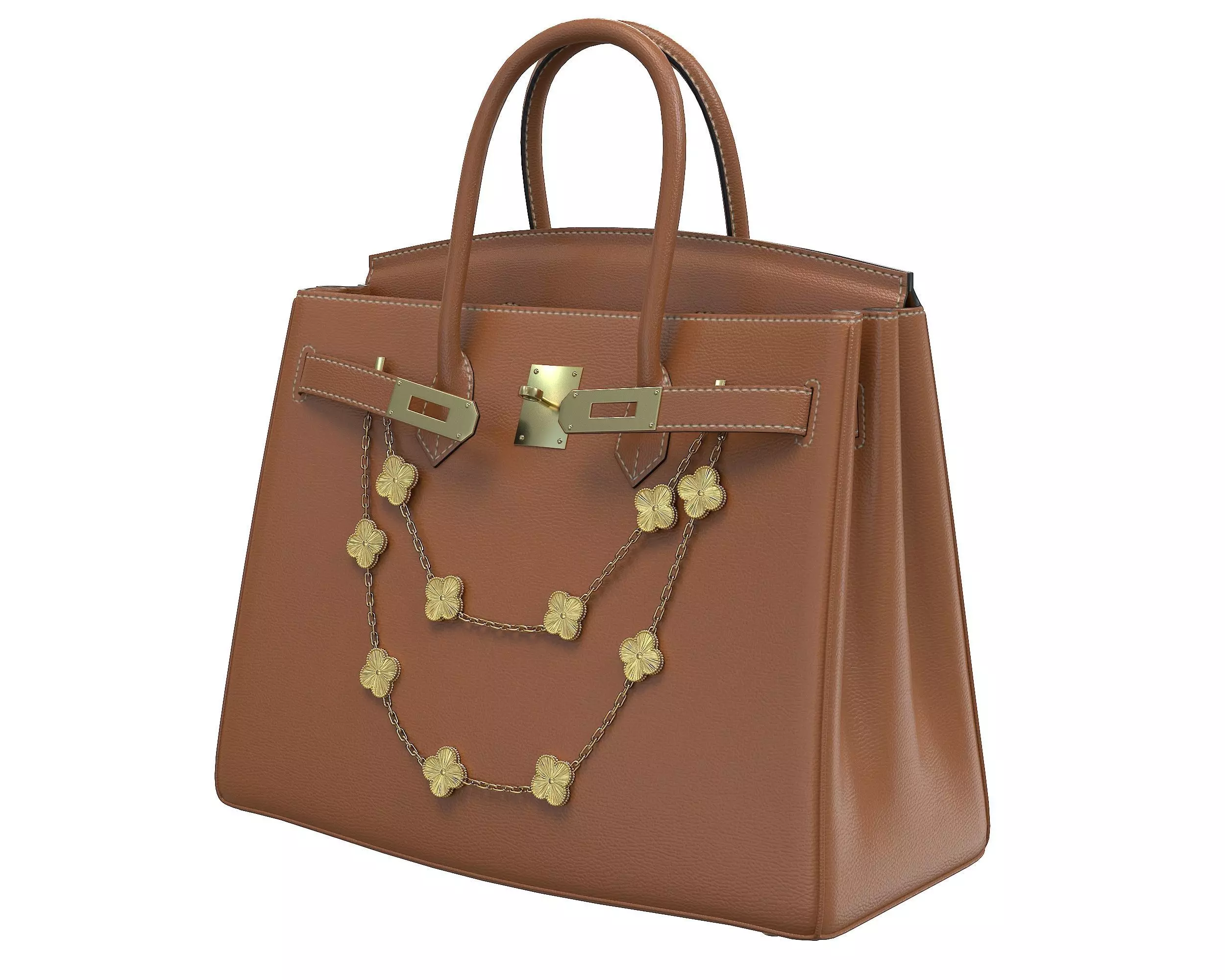 Hermes Birkin Bag with Chain Brown Low-poly 3D model