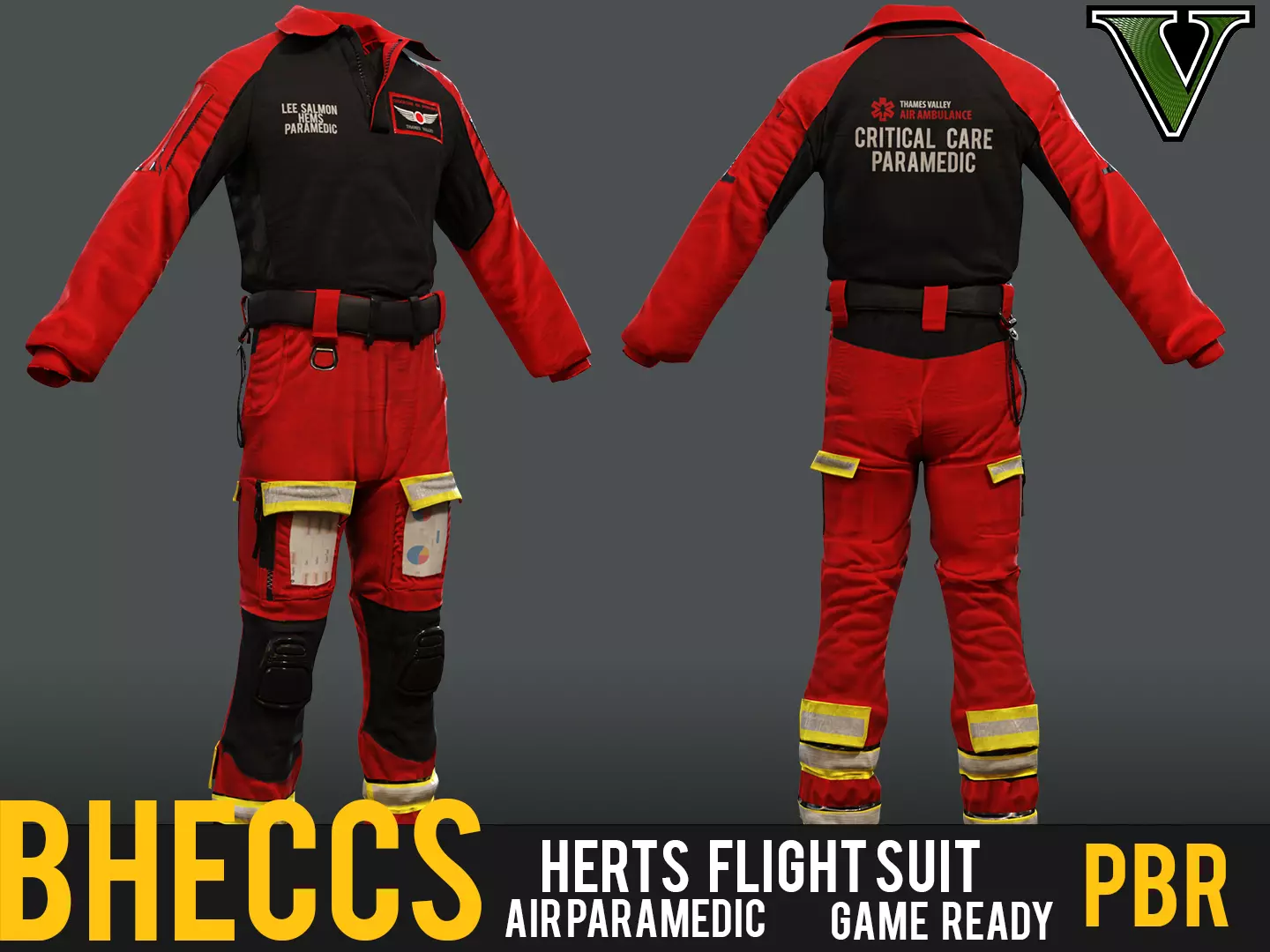 This highly detailed 3D model represents the iconic Herts Air Paramedic Flight Suit, as used by air ambulance crews, including BHECCS (British Helicopter Emergency Care Crew Services). Designed with precision, it replicates all the unique features of the real uniform, such as reflective high-visibility strips, functional pockets, and accurate insignias. This model is ideal for simulations, animations, game development, and educational purposes related to emergency medical services and helicopter operations.