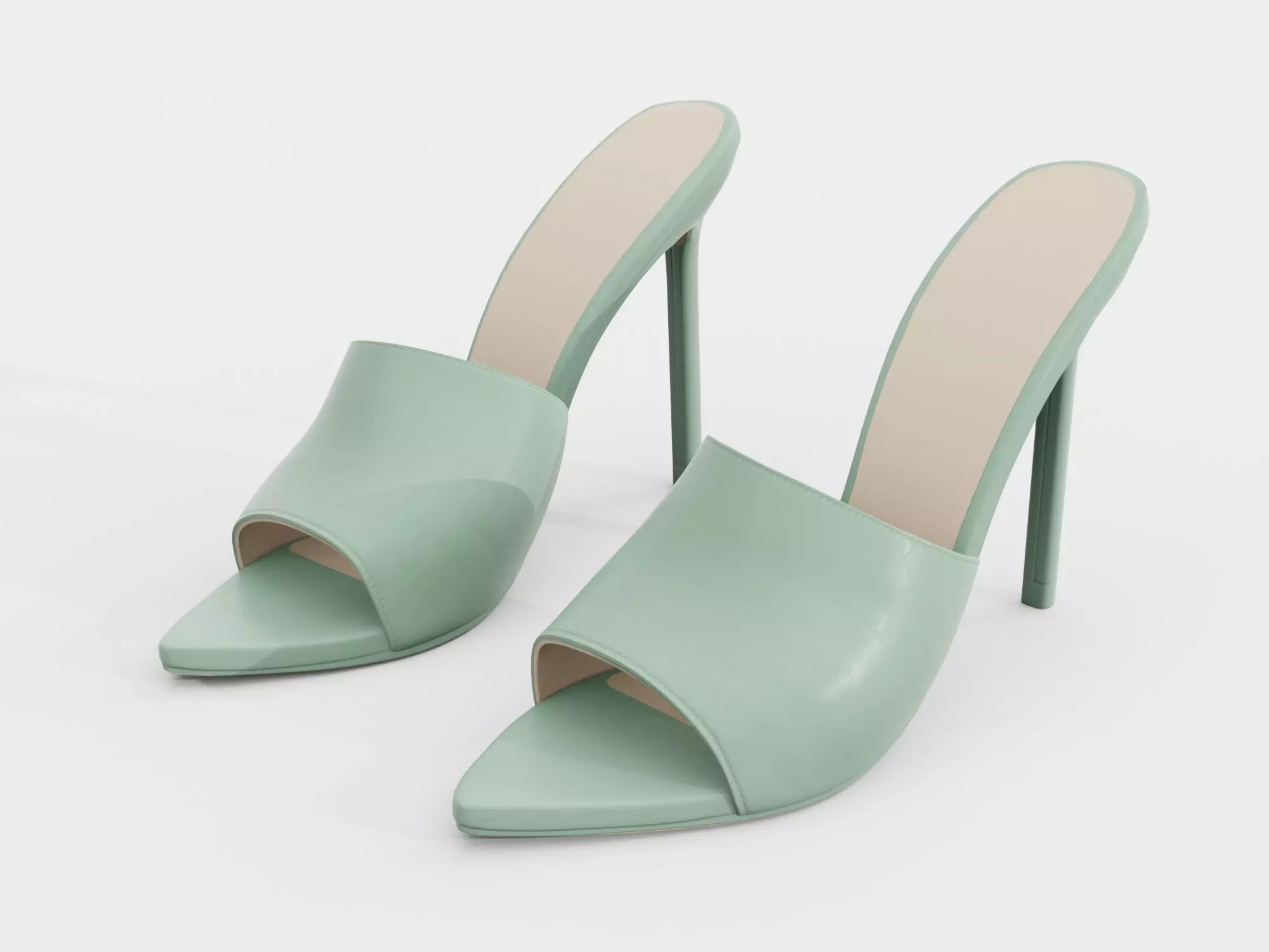 High Heels Mule Sandals Green Low-poly 3D model