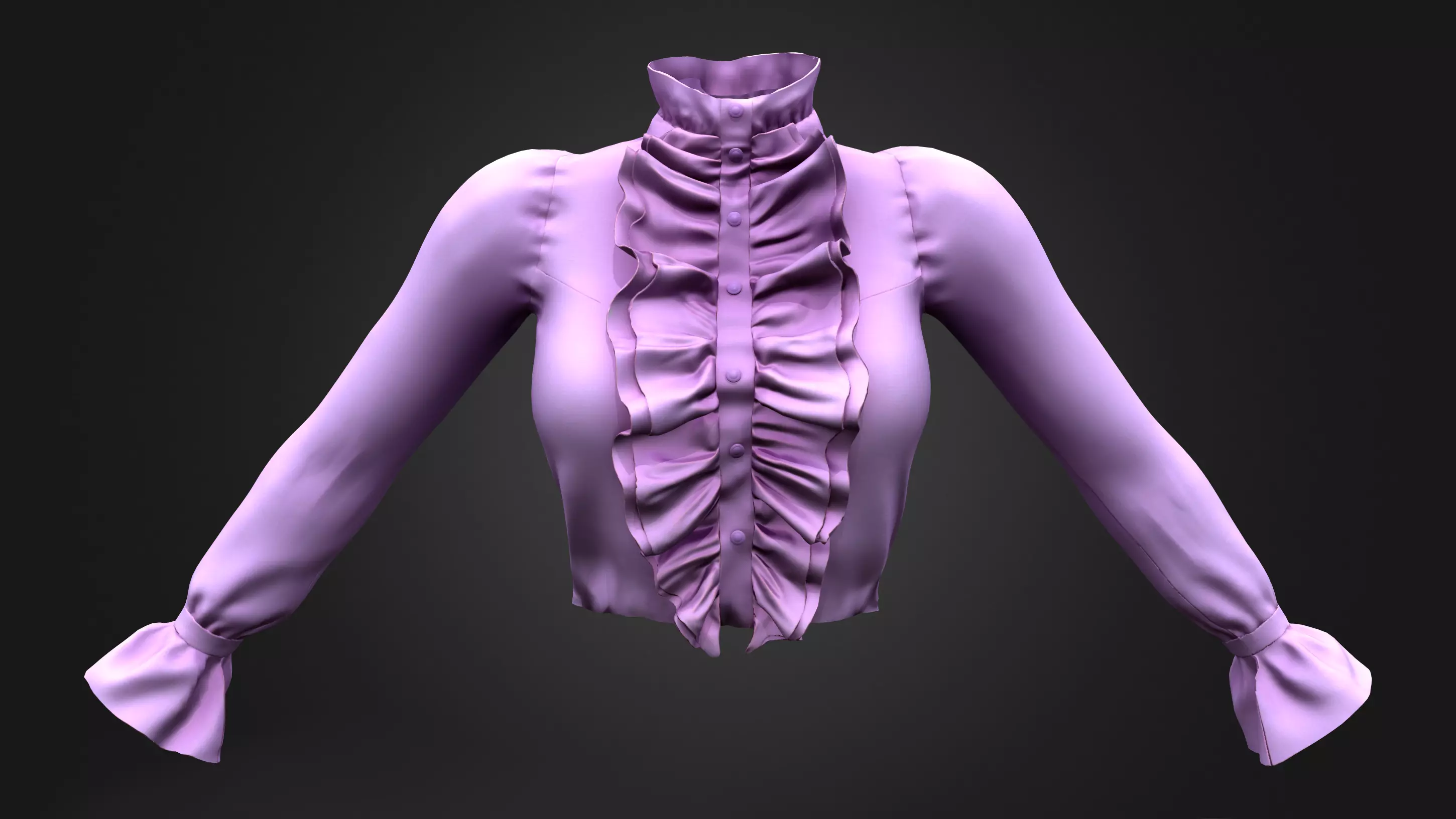 High Neck Tucked In Long Sleeves Victorian Blouse Shirt Low-poly 3D model