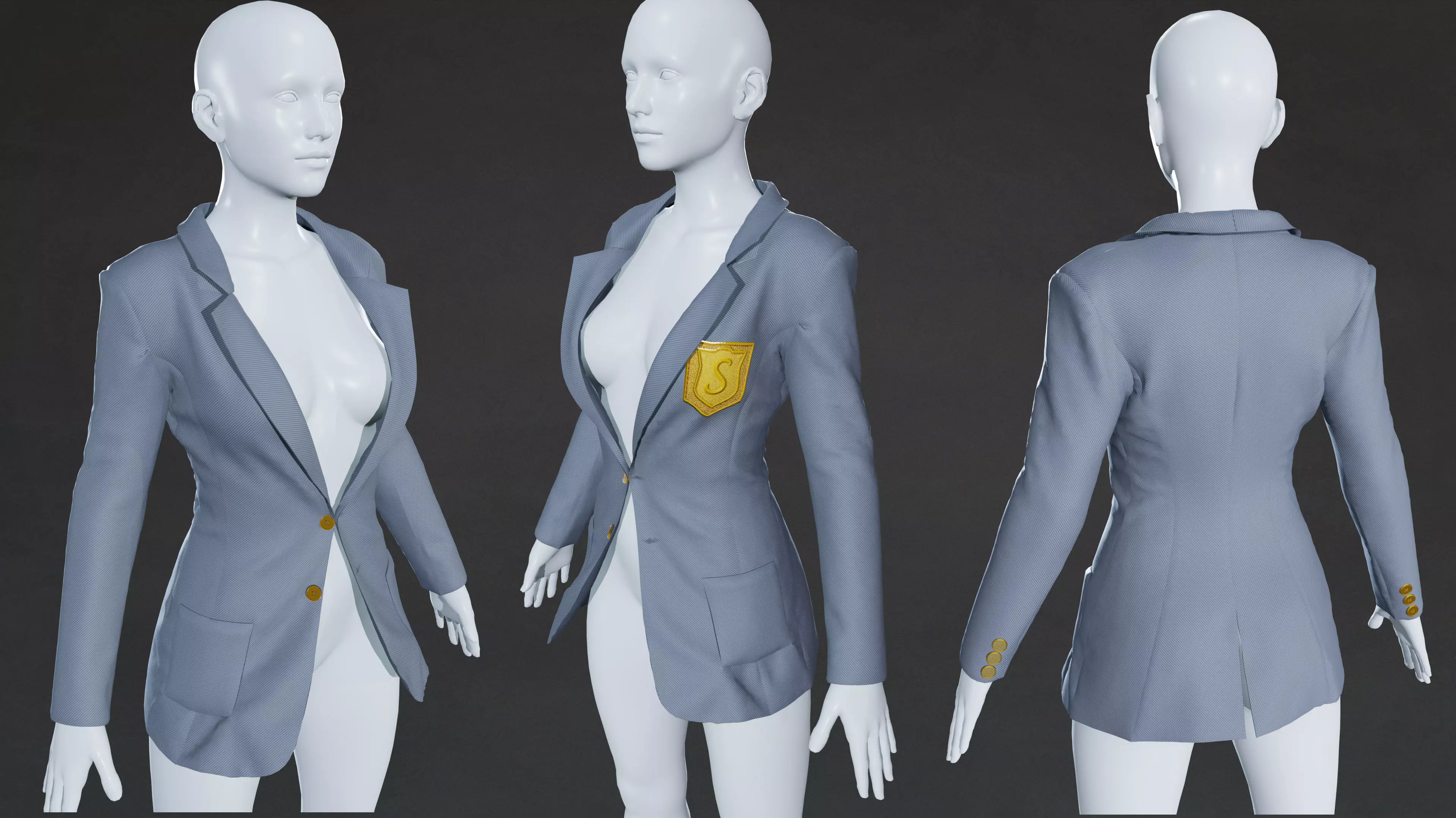 Highly detailed 3D high school jacket model, ideal for animation projects, video games, educational visualization, and more. This model features an optimized geometry with 92,700 triangles, striking a great balance between detail and performance.