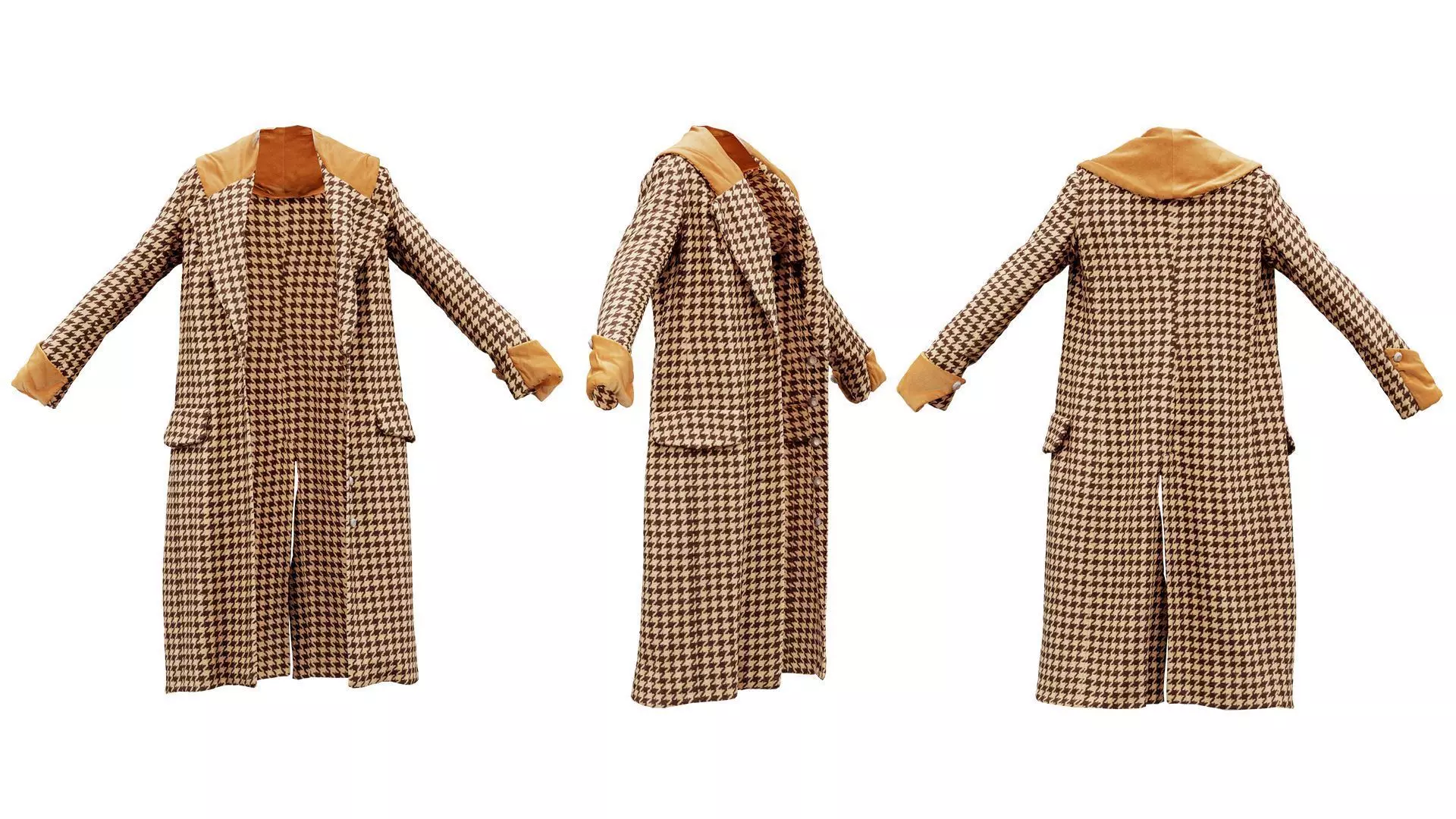 Zip archive Houndstooth_Coat_Open_High-Res_Renderings.zip provides 12 Transparant PNG turntable renders, rendered in Marmoset Toolbag.
