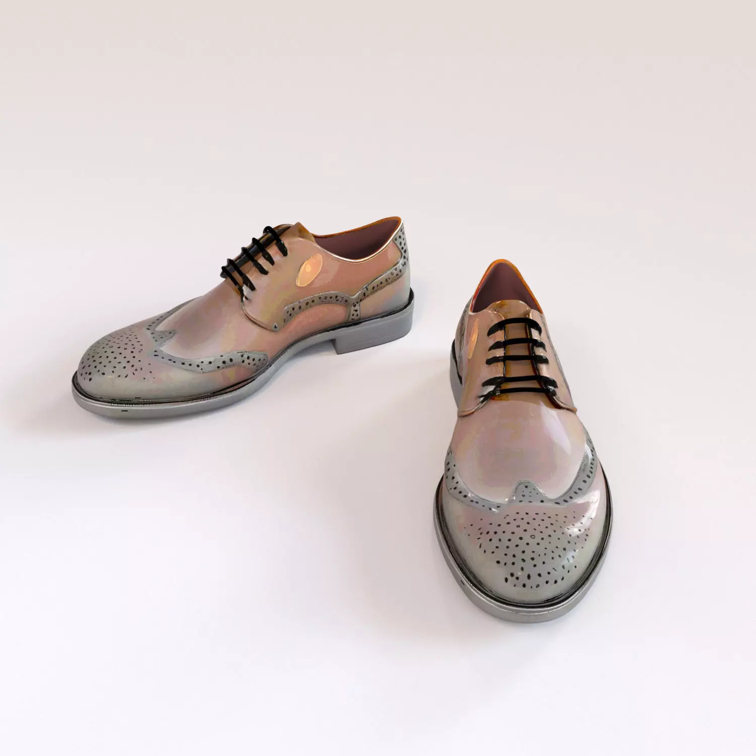 Iridescent Wingtip Oxford Shoes 3D Model – Classic Formal Brogues with Modern Finish