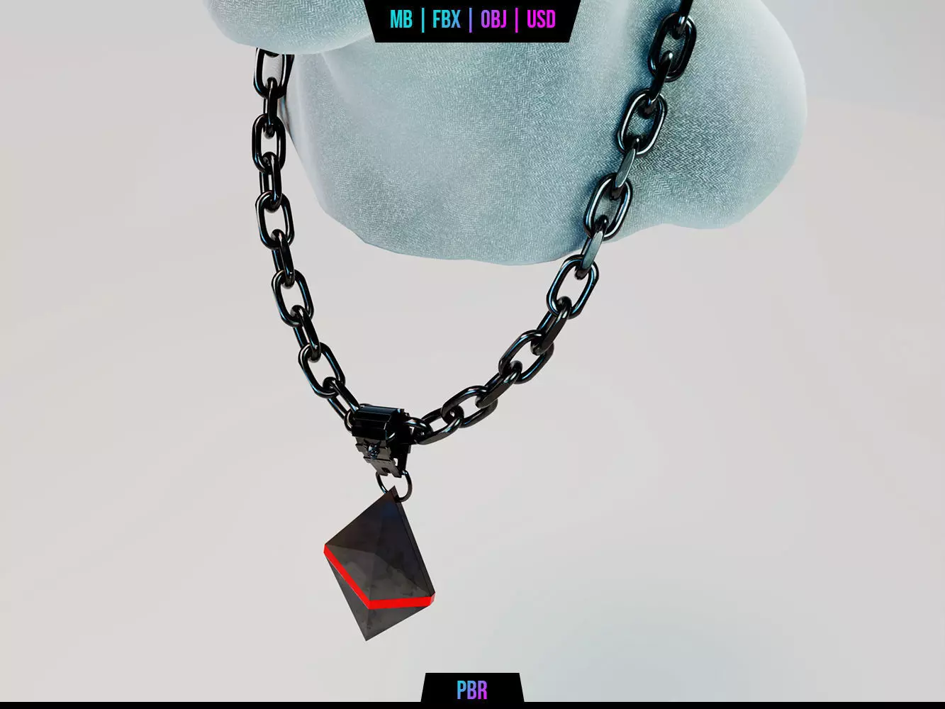 This model's rigging and chain design are done in Maya, and it's finished with the Mash plugin. Only the rigged model may be accessed in Maya due to the use of the Mash plugin. However, we designed this necklace so that it can be easily placed on any neck without need for many changes.