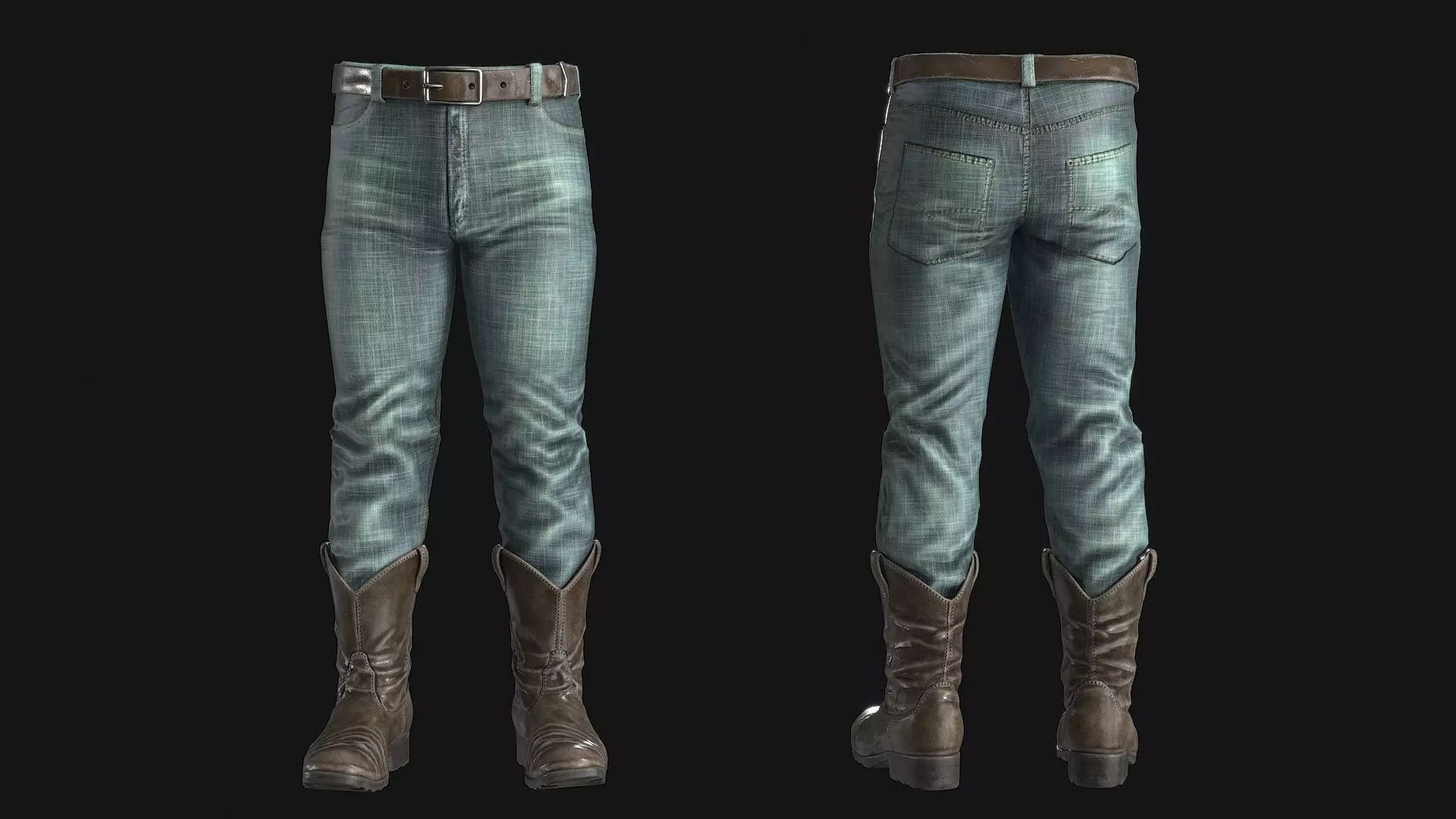 A Jeans and Boots clothing model .Formats MAX BLENDER FBX OBJ (without rig). And a WARDROBE item for a METAHUMAN (with a metahuman rig)In the engine, the color changes inside the material, for other packages you can use Photoshop to change the colors of your diffuse map or other texture. The archive also includes masks for the main parts for these formats .Simply add the wardrobe elements to your average-sized Metahuman character (the original model was made for a standard BoF2 BoF4 and Dof4 Metahuman body). FBX format for BOF2The clothing model is presented without the metahuman.-The model has a fully textured 4096-High quality polygonal model, correctly scaled for an accurate representation of the original object.-Models resolutions are optimized for polygon efficiency.-Model is fully textured with all materials applied.-No part-name confusion when importing several models into a scene.-No cleaning up necessaryjust drop your models into the scene and start rendering.-No special plugin needed to open scene-Unit scale cm