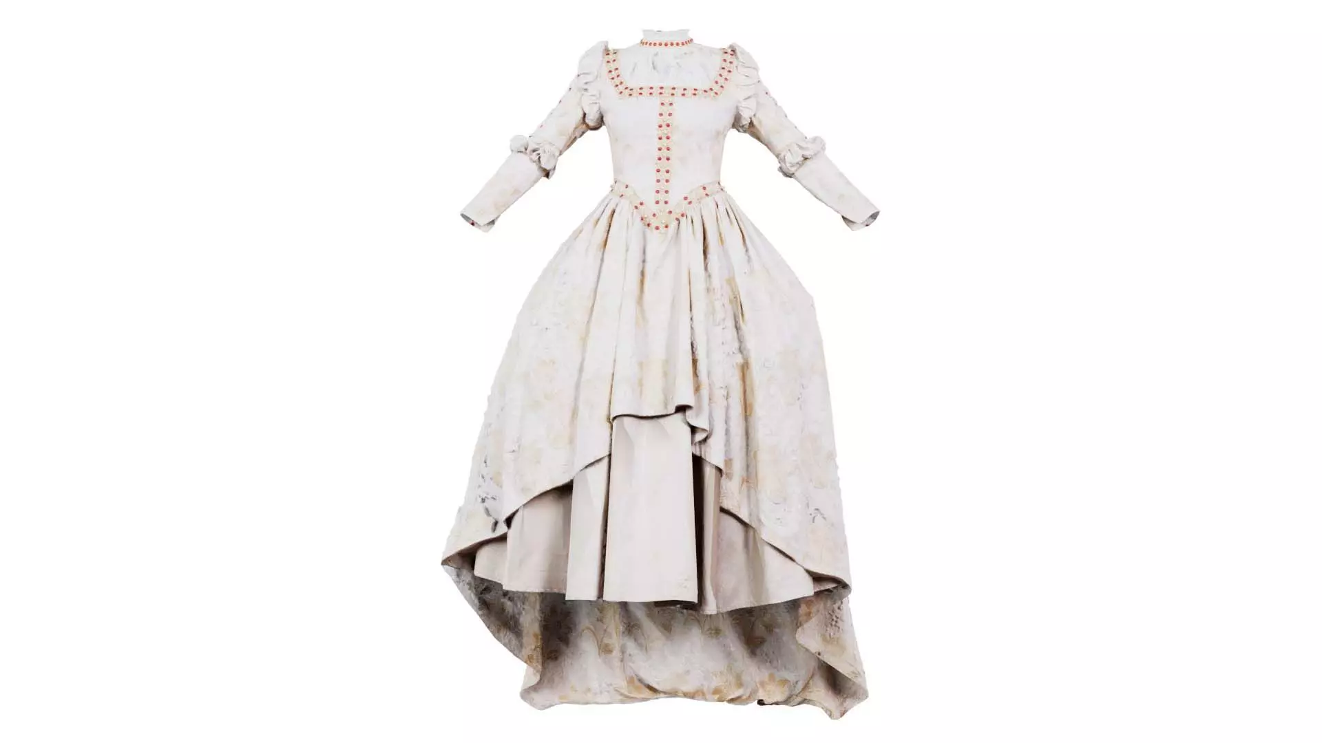Polygonal Miniatures presents jewel dress, a model from our 3D scanned catalogue. The model, a dress made from white fabric with orange embroidery, is obtained by photogrammetry, and scanned using SLR camera's.Processing takes place in Zbrush and Photoshop and the resulting 3D model has unwrapped, non overlapping UV's, and a texture and normal map. Before publishing, we make sure the model has real world scale (meters), correct shader setup and is centered at the origin.Apart from the various file formats, we also offer a Blender file with material and textures set-up, ready for export and rendering. More info can be found below: