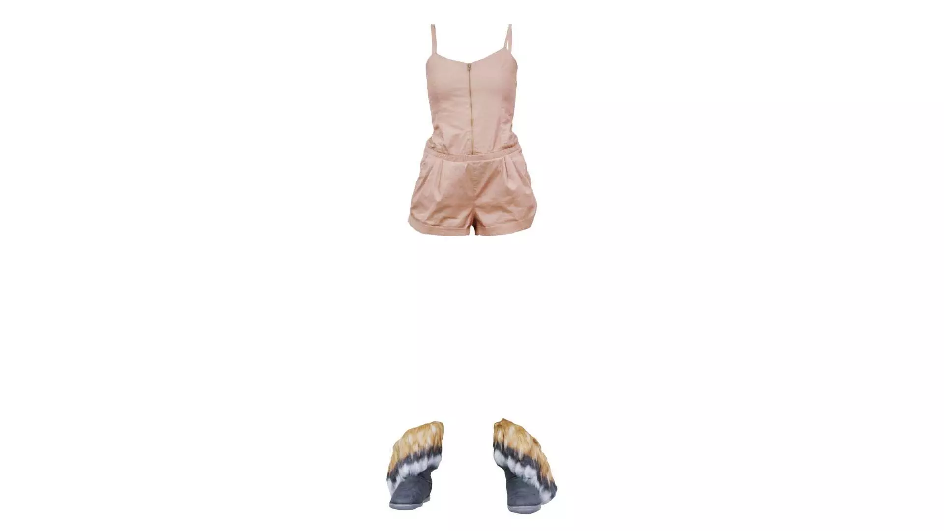3D scanned model featuring a pair of shoes and a pink outfit. This model, jumpsuit fluff, has been created using photogrammetry from a real world object.The raw scan data has been cleaned, retopologized and UV-unwrapped using Zbrush. The result is a low poly mesh with baked maps. The .obj and .mtl are configured so that maps will load automatically in the shader (tested in Blender). In addition, a Blender scene is provided with the model and shader already set up for rendering and export. Detailed information below:
