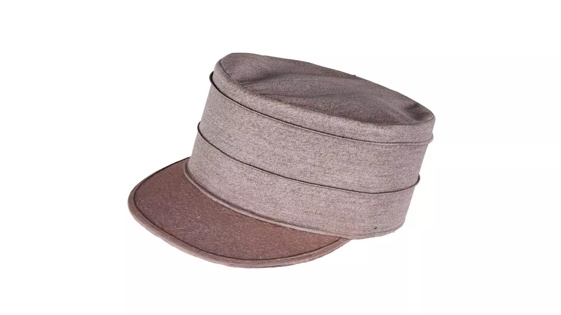 3D scanned model featuring a hat with a brown and gray band. This model, kepi, has been created using photogrammetry from a real world object.The raw scan data has been cleaned, retopologized and UV-unwrapped using Zbrush. The result is a low poly mesh with baked maps. The .obj and .mtl are configured so that maps will load automatically in the shader (tested in Blender). In addition, a Blender scene is provided with the model and shader already set up for rendering and export. Detailed information below: