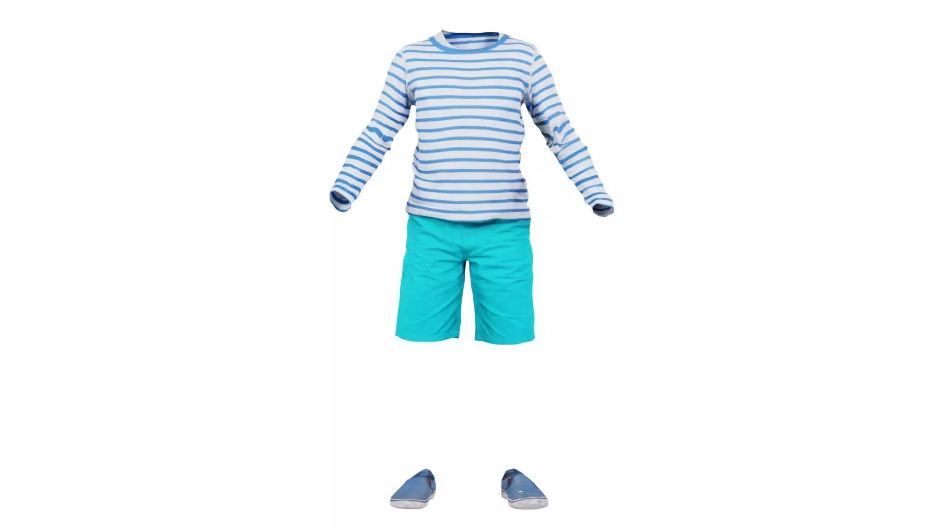3D scanned model featuring a of a boy in a striped shirt and shorts. This model, kid 8, has been created using photogrammetry from a real world object.The raw scan data has been cleaned, retopologized and UV-unwrapped using Zbrush. The result is a low poly mesh with baked maps. The .obj and .mtl are configured so that maps will load automatically in the shader (tested in Blender). In addition, a Blender scene is provided with the model and shader already set up for rendering and export. Detailed information below: