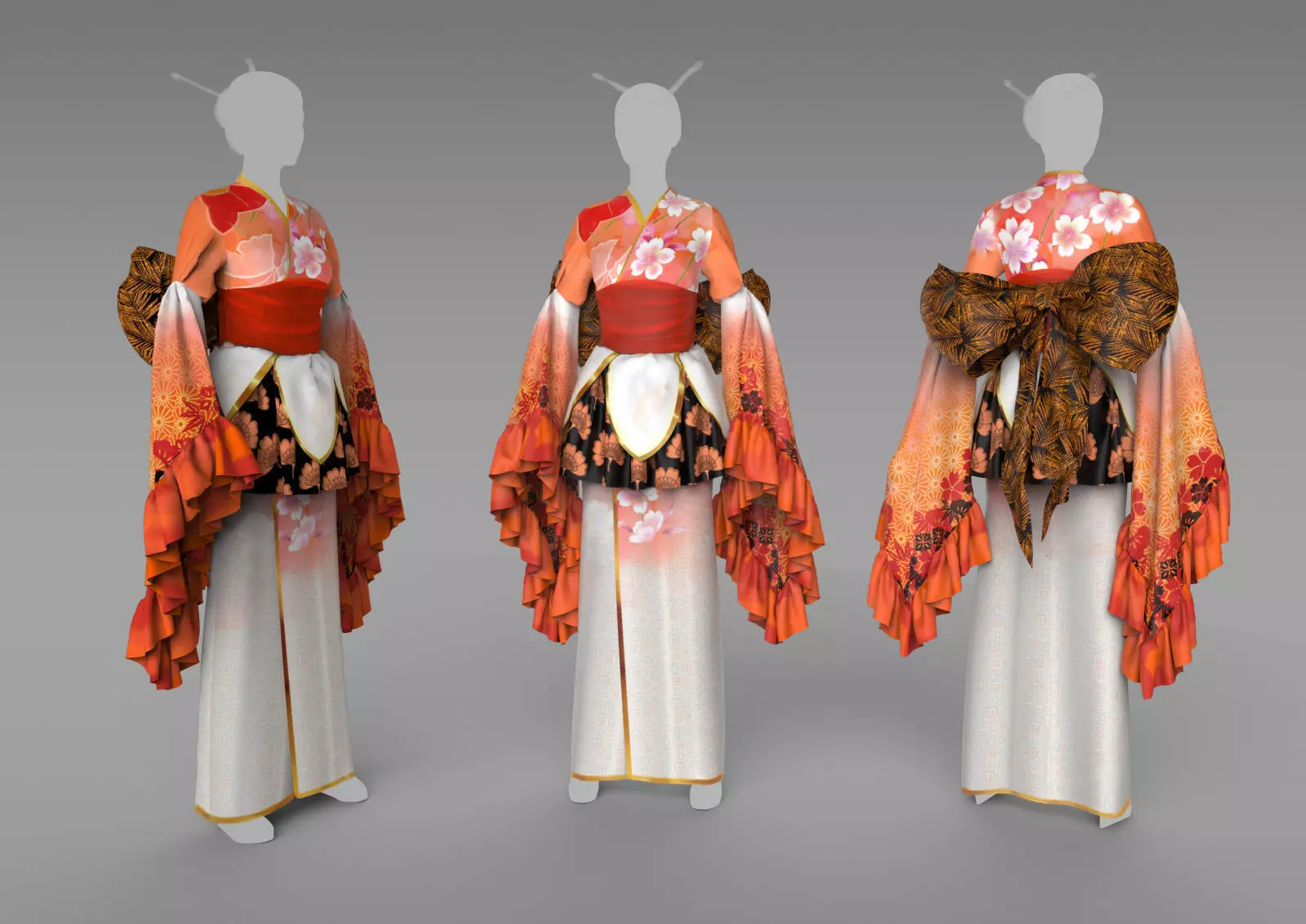 Modern kimono model made in Marvelous Designer.Textured with photoshop. Project and textures are included.