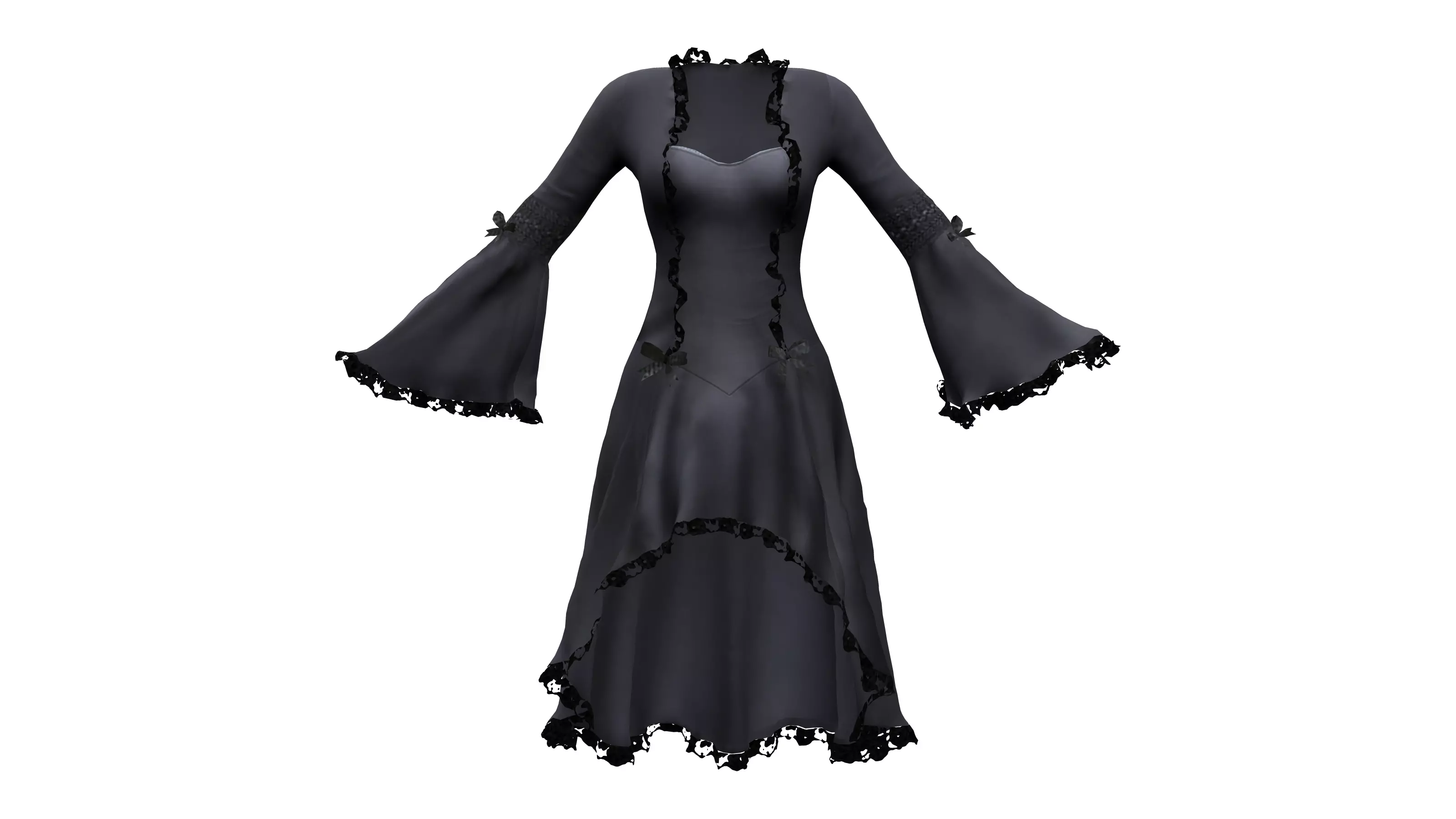 Lace Edged Bell Sleeve Dress Low-poly 3D model