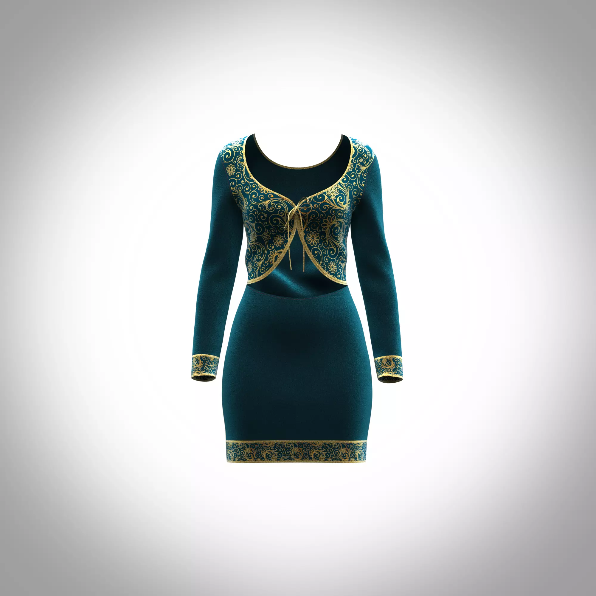 Ladies Dress with glitter, traditional and arabic motif used. Very High Quality Rendered. Made By Clo Standlone. This model has a low polycount . Includes various formats with realistic effect textures and normal map. Ready Pattern for make actual product.** Provided File Formates are Dxf,OBJ, FBX, Zprj, AI, Gltf, xml, mcx . Let me know if any support required in comment box.