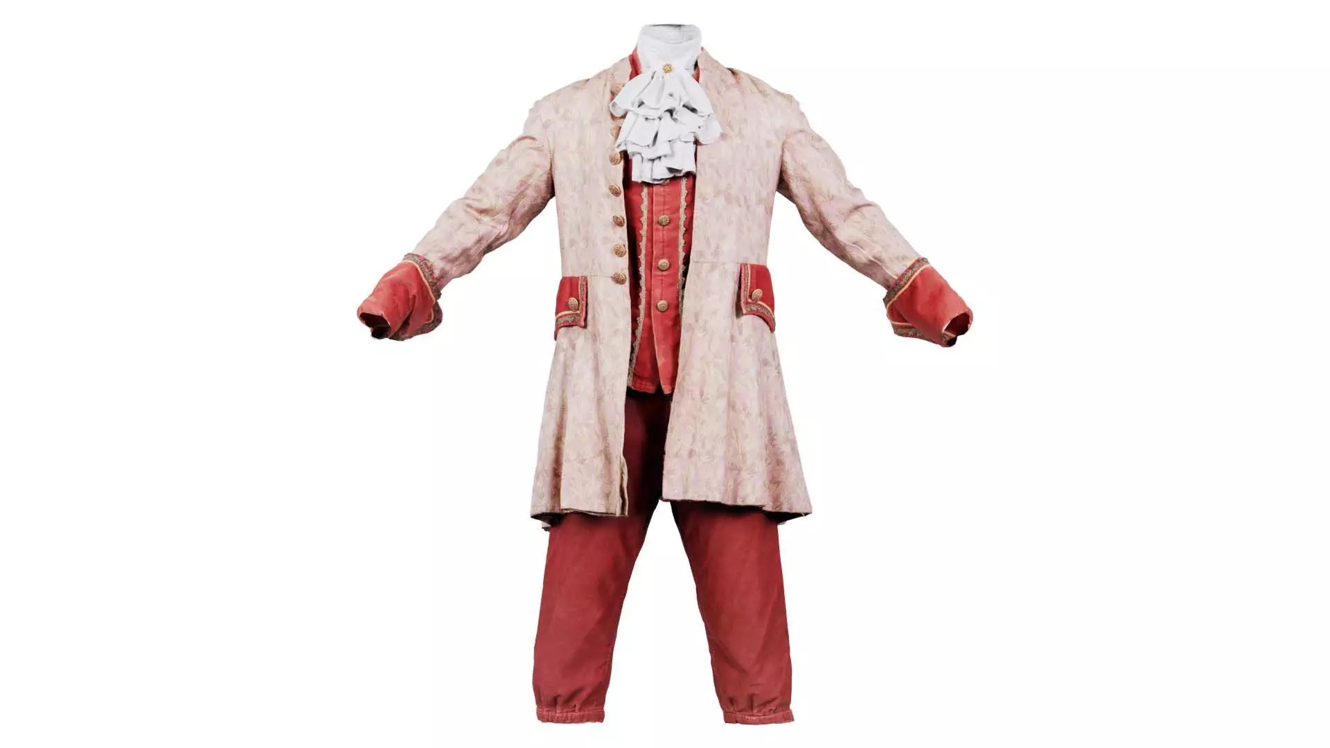 This model, leaf decorated historic costume, has been created using photogrammetry from a real world object. It is featuring a costume made up of red and white clothing.The 3D Model is part of the Polygonal Miniatures Remastered collection, which has been optimized with better shaders, correct scaling (meters) and centered position.We use multi camera capturing in the 3D scanning process. The scan data is cleaned and processed in Zbrush and Photoshop. In the end, the low poly product contains unwrapped UV's, textures and normals maps. Detailed specifications can be found below: