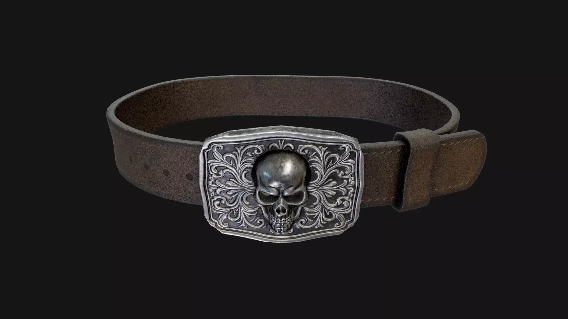Leather Belt with Skull Buckle – Game-Ready 3D Model for Unity, Unreal Engine & Blender