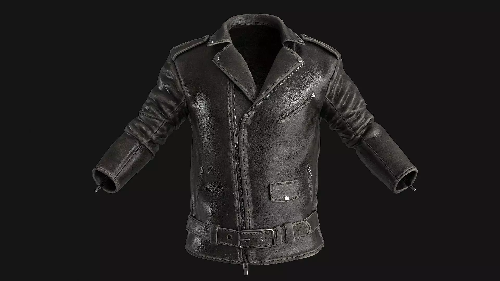 A Leather Jacket clothing model .Formats MAX BLENDER FBX OBJ (without rig). And a WARDROBE item for a METAHUMAN (with a metahuman rig)Simply add the wardrobe elements to your average-sized Metahuman character (the original model was made for a standard BoF2 BoF4 Dof4 Metahuman body). FBX format for BOF2The clothing model is presented without the metahuman.-The model has a fully textured 4096-High quality polygonal model, correctly scaled for an accurate representation of the original object.-Models resolutions are optimized for polygon efficiency.-Model is fully textured with all materials applied.-No part-name confusion when importing several models into a scene.-No cleaning up necessaryjust drop your models into the scene and start rendering.-No special plugin needed to open scene-Unit scale cm