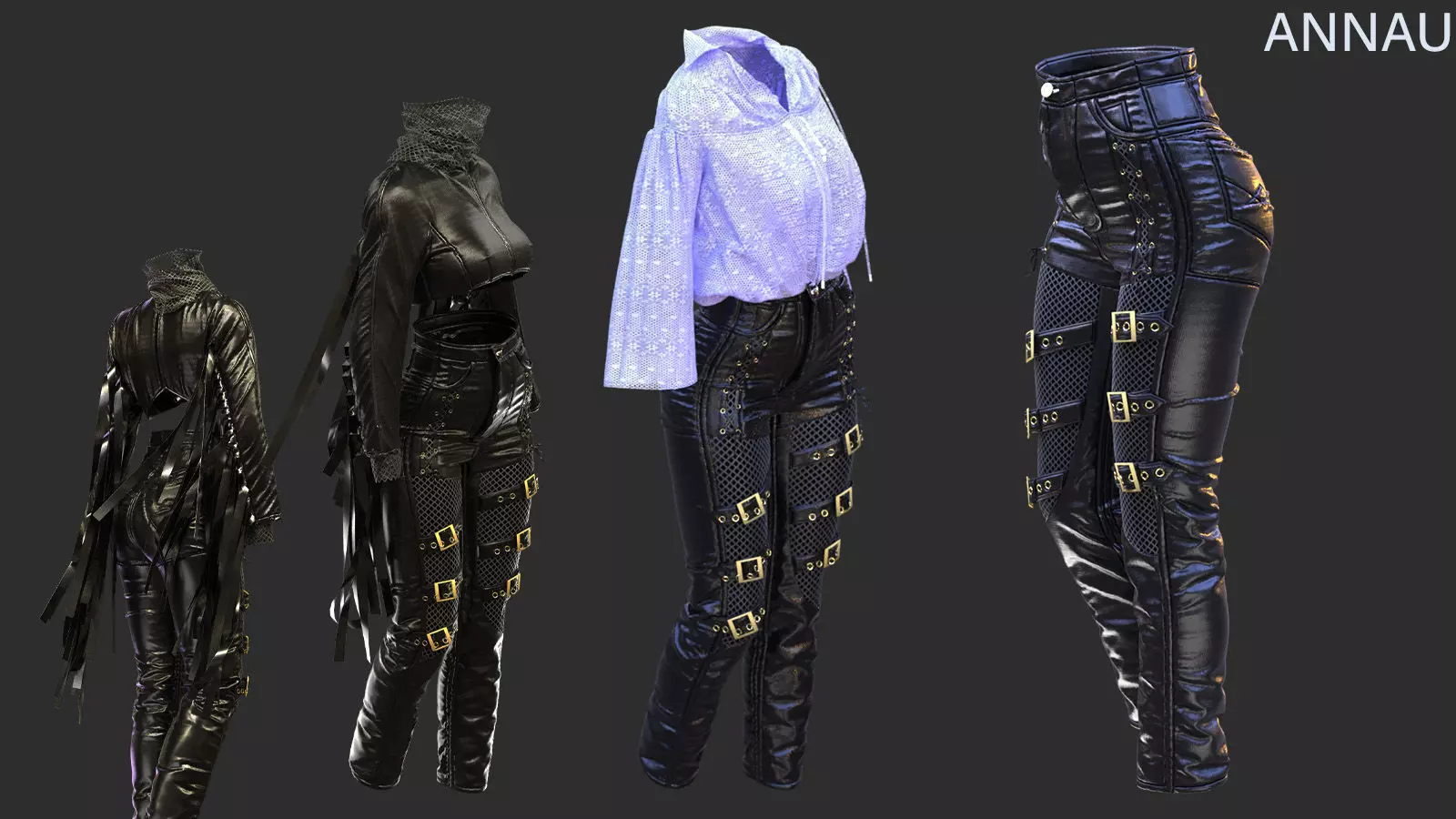 A Pack of models created in Marvelous Designer, Clo3D done by ANNAU. Fit Genesis 8.1 Female Avatar.
