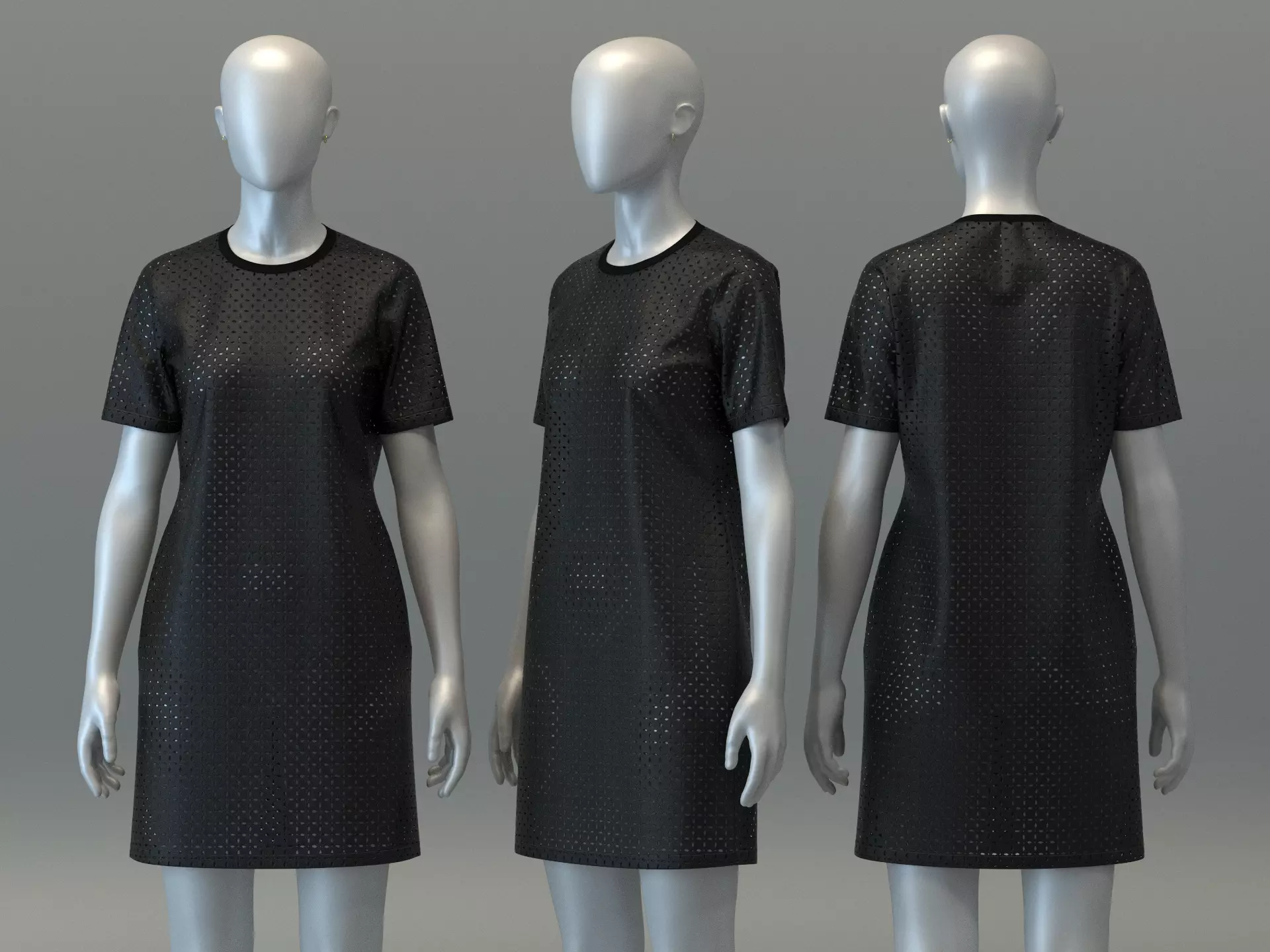 DESIGN DETAILS• Main Fabric: Vegan Leather (Body & Sleeves)• Combi Fabric: Knit Jersey (Neckband)• Silhouette: Relaxed• Length: Mini• Finish: Facing & stitches included for a more realistic look when rendered