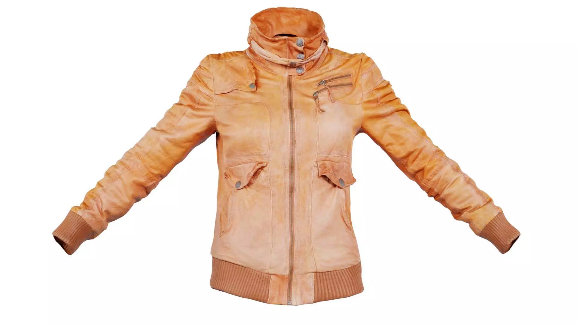 3D scanned model featuring a women's leather jacket with a zipper on the front. This model, light brown leather jacket closed, has been created using photogrammetry from a real world object.The raw scan data has been cleaned, retopologized and UV-unwrapped using Zbrush. The result is a low poly mesh with baked maps. The .obj and .mtl are configured so that maps will load automatically in the shader (tested in Blender). In addition, a Blender scene is provided with the model and shader already set up for rendering and export. Detailed information below: