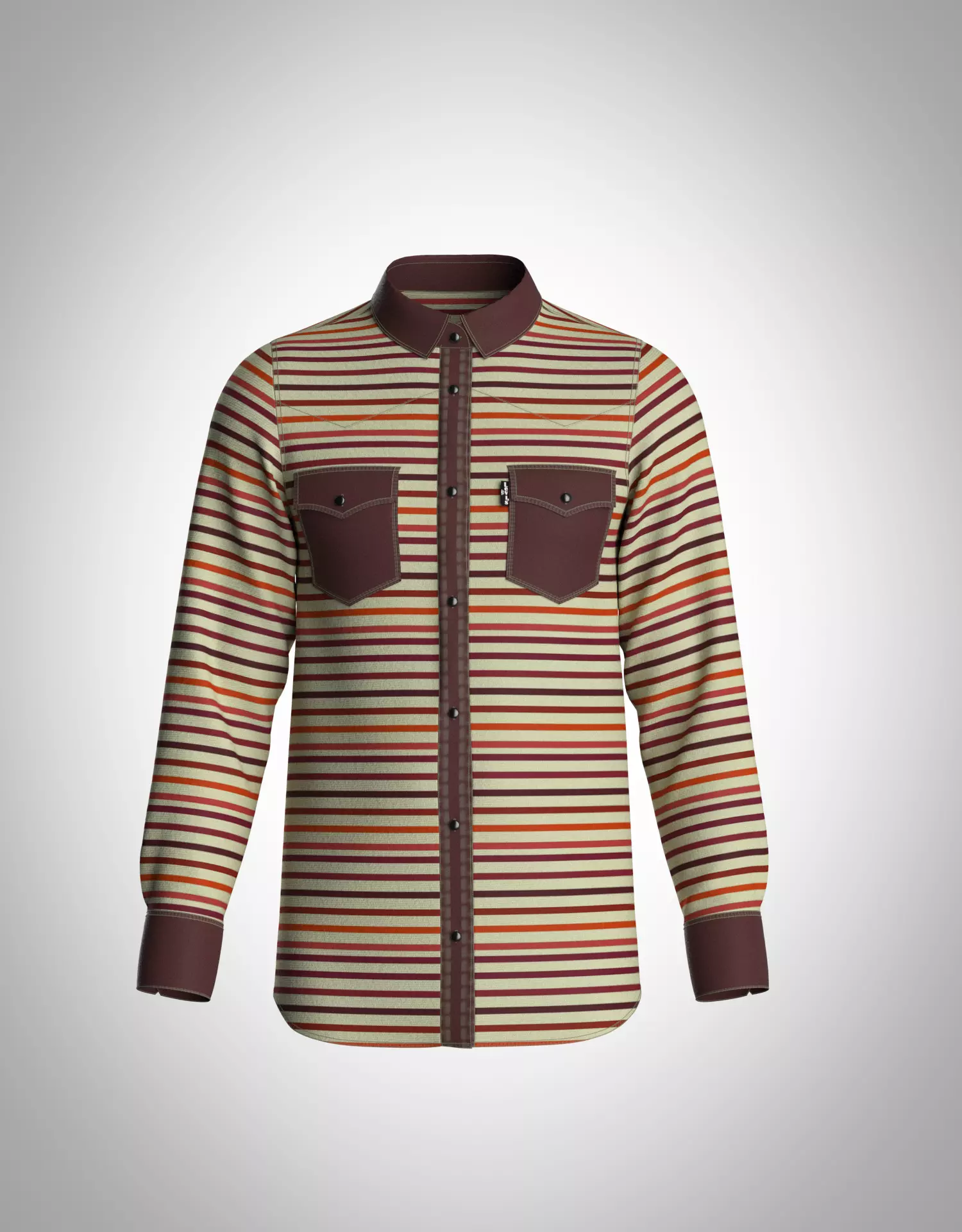 Photorealistic 3d model of a standard Livais shirt with multi colour orange maroon black lining shirt Suitable for any production work - short and feature films, broadcast design, product visualization, etc. The model was originally created and setuped for rendering in CLO3D