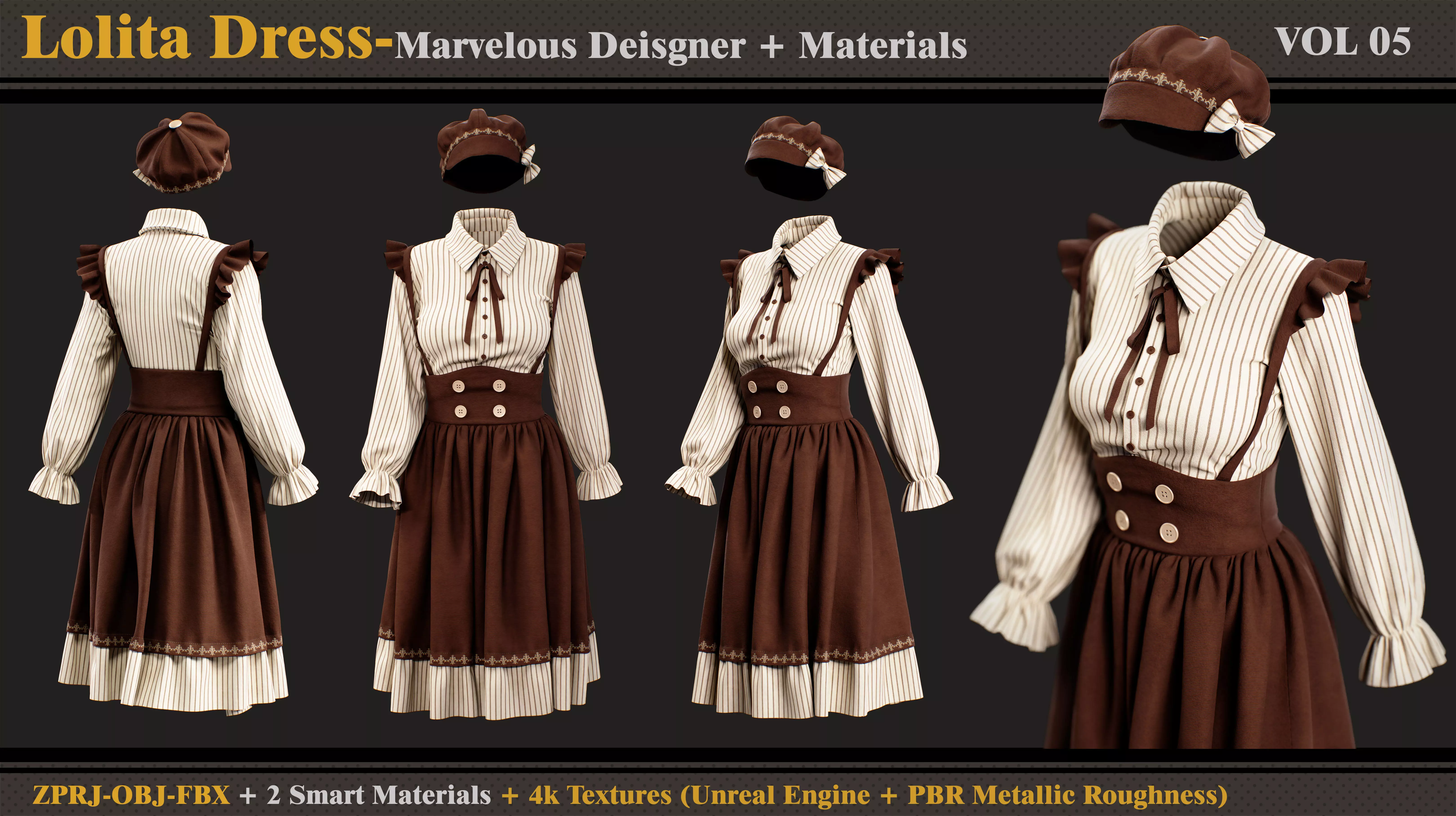 Lolita Dress -MD-Clo3-Smart Material- Textures- OBJ -FBX 3D model