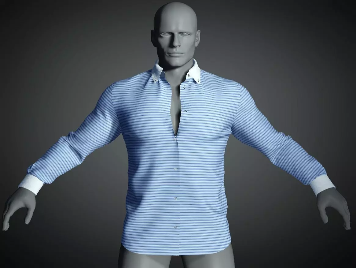 Long sleeve shirt with open collar in blue white stripe 3D model